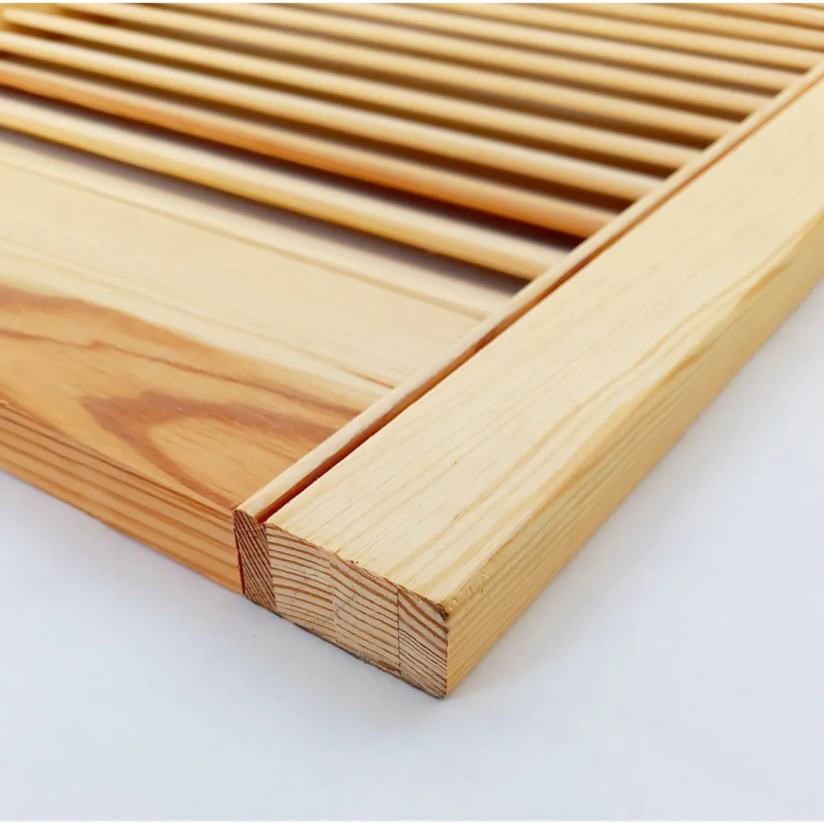 Mit der Lamellentür aus massivem Kiefernholz schaffen Sie eine warme und gemütliche Atmosphäre in Ihrem Zuhause. Die Tür ist nicht nur ein optisches Highlight, sondern auch praktisch im Einsatz.