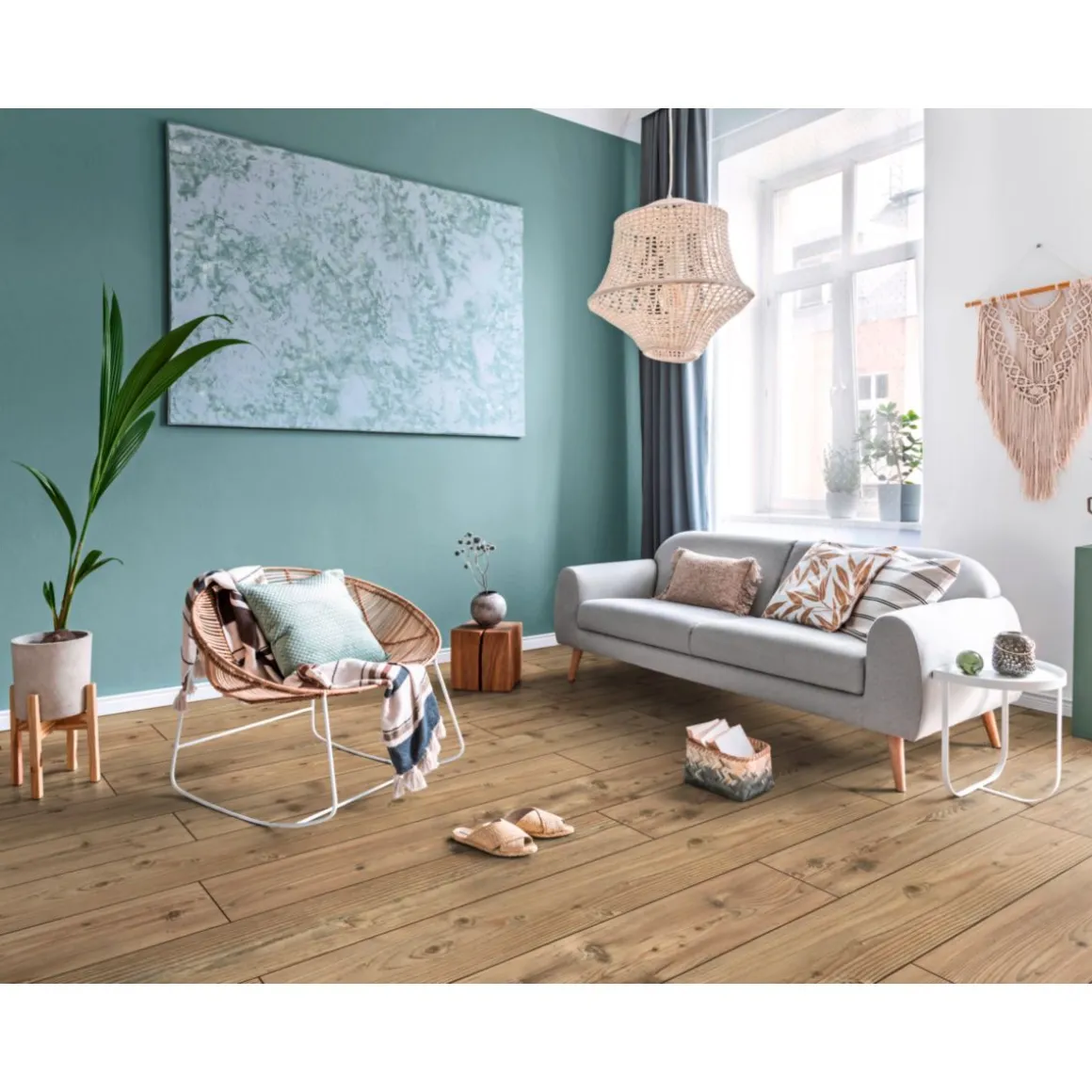 - Laminat in authentischer Landhausdielen-Optik für ein großzügiges Raumgefühl
