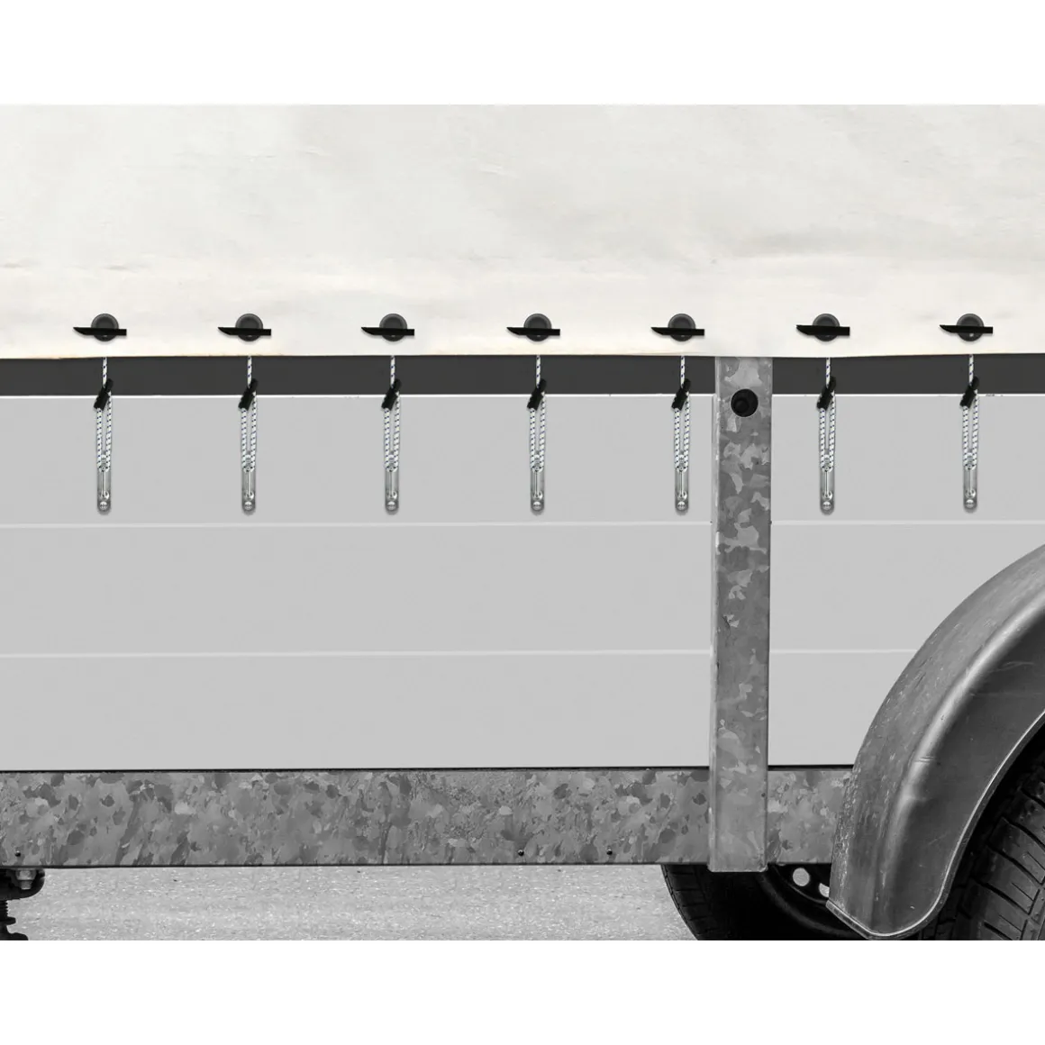 Mit den LAS 10674 Planenspannern mit Klapphülse wird das Befestigen von Planen und Abdeckungen zum Kinderspiel. Die hochelastischen Gummistränge sind extrem reißfest und dehnbar, sodass sie sich optimal an die Form des zu befestigenden Materials anpassen.