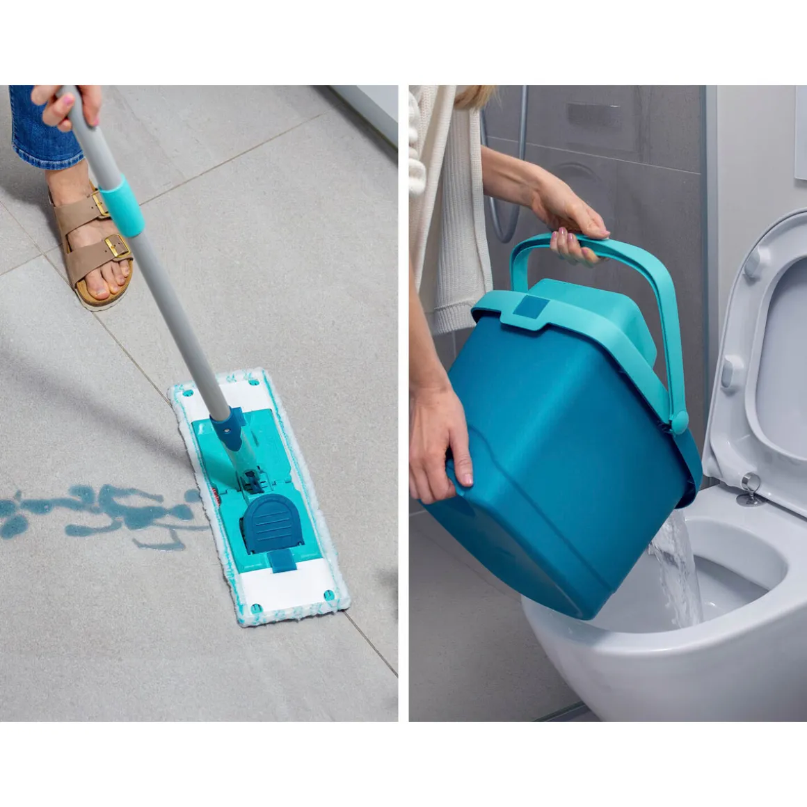 des Eimers gehört auch Kleckern beim Ausleeren der Vergangenheit an. Anschließend lässt sich der kompakte Eimer leicht verstauen. Das ClickSystem macht den Stahlstiel außerdem kompatibel mit vielen weiteren Reinigungstools und Wischern von Leifheit für Boden und Oberflächen. Wird