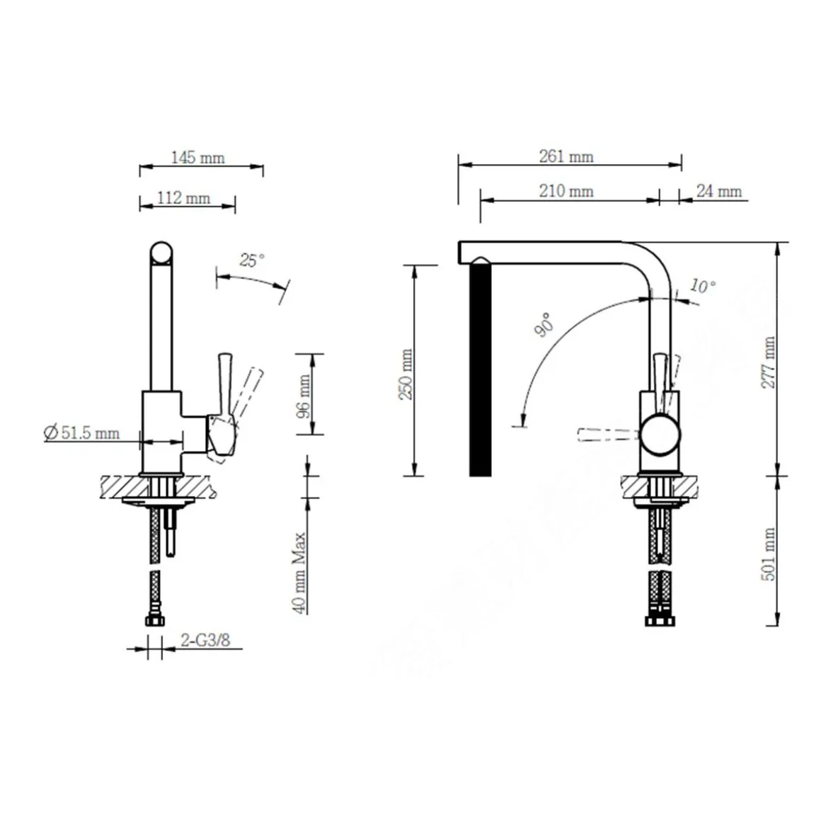 - Länge der Anschlussschläuche beträgt 550 mm für flexible Installationsoptionen