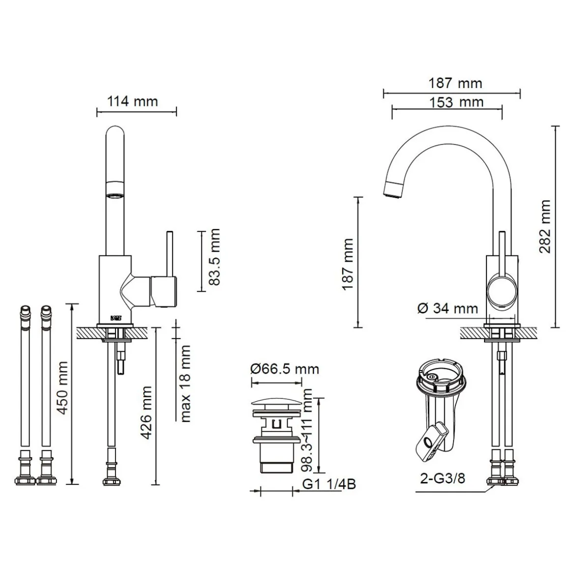 - Lieferumfang: Armatur, Befestigung, Schläuche, Pop-Up