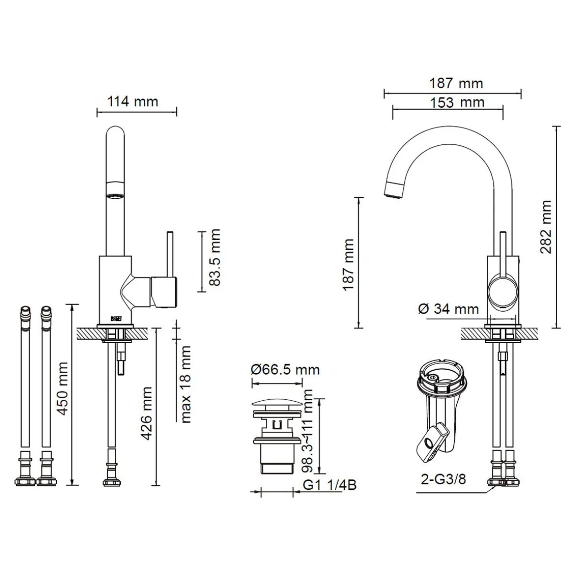 - Durch die Maße von 11,5×19,5×28 cm passt die Armatur an nahezu jeden Waschtisch