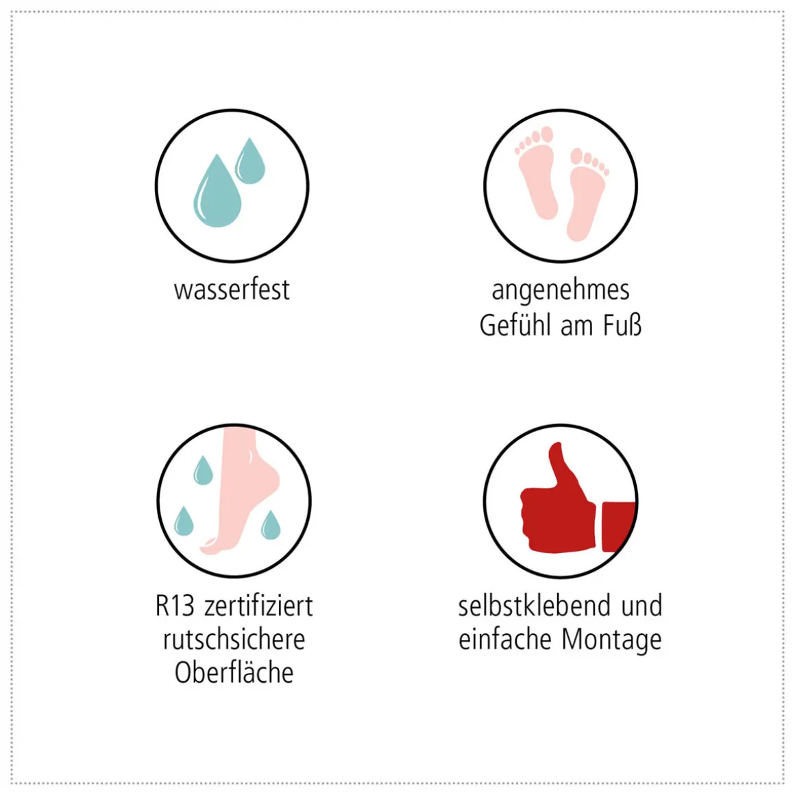 - Wasserabweisend: Perfekt geeignet für Feuchträume wie Dusche oder Badewanne, bleibt zuverlässig trocken.
