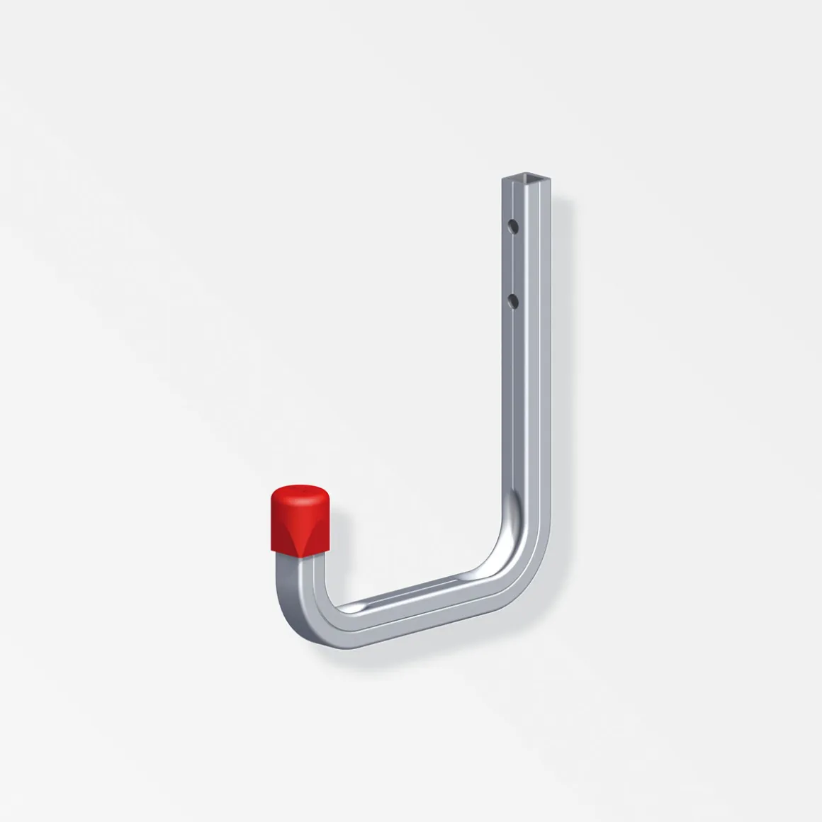 Mit dem MyTool Wandhaken Typ 3 erhalten Sie eine hochwertige und langlebige Aufbewahrungslösung aus Aluminium. Die rote Kappe sorgt dabei nicht nur für optische Akzente, sondern auch dafür, dass der Haken schnell gefunden wird. Dank seiner hohen Belastbarkeit eignet er sich ideal zur Aufbewahrung von Werkzeugen oder schwereren Gegenständen wie Fahrrädern oder Gartenmöbeln.