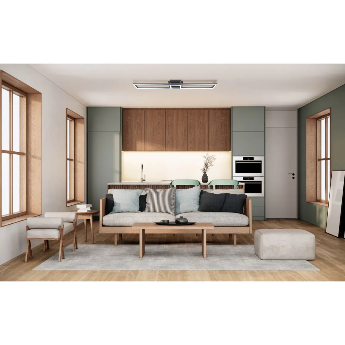 Verleihen Sie Ihrem Zuhause mit der BANTRY Deckenleuchte das gewisse Etwas. Mit einer Deckenleuchte kann ein Raum optimal ausgeleuchtet werden. Sie verbreitet das Licht gleichmäßig und erreichen jede Ecke, was eine freundliche und lichtdurchflutete Atmosphäre erzeugt. Der Look dieser Leuchte im Modern Style wird durch ihre kantige Gestaltung gekonnt unterstrichen. Perfekt für alle, die es schlank und edel mögen! Egal ob im Wohnzimmer, Schlafzimmer oder Büro – diese aluminiume Leuchte aus Metall und Kunststoff sorgt für einen Blickfang. Das gebürstete Gestell und der durchsichtige, klare Schirm bilden eine perfekte Einheit. Die Deckenleuchte misst 115 cm in der Länge, 20 cm in der Breite und 8,5 cm in der Höhe. Mit 1 LED Platine, bestückt mit 1 LED, sorgt diese Deckenleuchte für ein schönes Licht in Ihrem Zuhause. Die Lichtquelle ist fest integriert. Dieses Produkt ist ideal für den Innenbereich, da es über die Schutzklasse Klasse 1 und die Schutzart IP20 verfügt. Darüber hinaus trägt es das CE+RoHS-Auszeichnung und Prüfzeichen, was seine hohe Qualität und Sicherheit belegt. Für den Netzbetrieb dieses Geräts wird eine Netzspannung von 220-240V ~ 50Hz benötigt. Die 33 Watt starke Leuchte liefert Ihnen 2000 Lumen um den Raum zu beleuchten. 6600 Kelvin Lichttemperatur ergeben eine gute und funktionelle Beleuchtung. Diese Deckenleuchte ist mit einer CCT-Technologie und RGB Technologie ausgestattet, die es ermöglicht, die Lichtfarbe und -intensität zu regulieren. Diese Funktion ermöglicht es, den Raum mit dem perfekten Licht zu beleuchten. Diese Deckenleuchte bietet mehr als nur gutes Licht: Sie ist mit einer Nachtlichtfunktion ausgestattet, die ein gedämmtes Licht abgibt, welches sich ideal für den Einsatz in Schlafzimmern eignet.