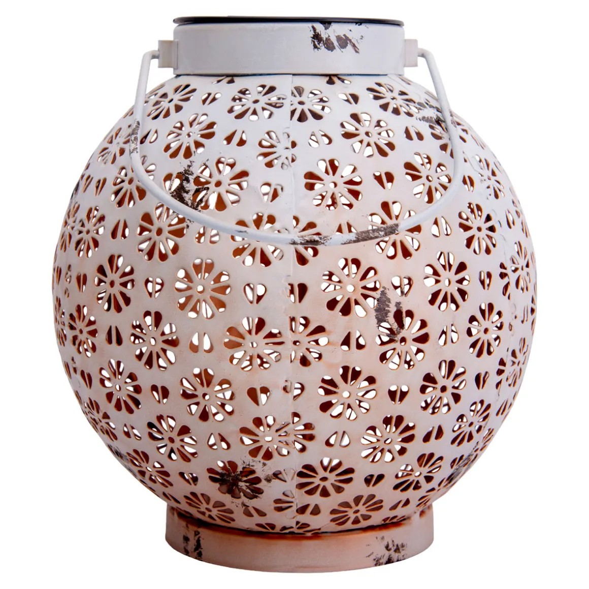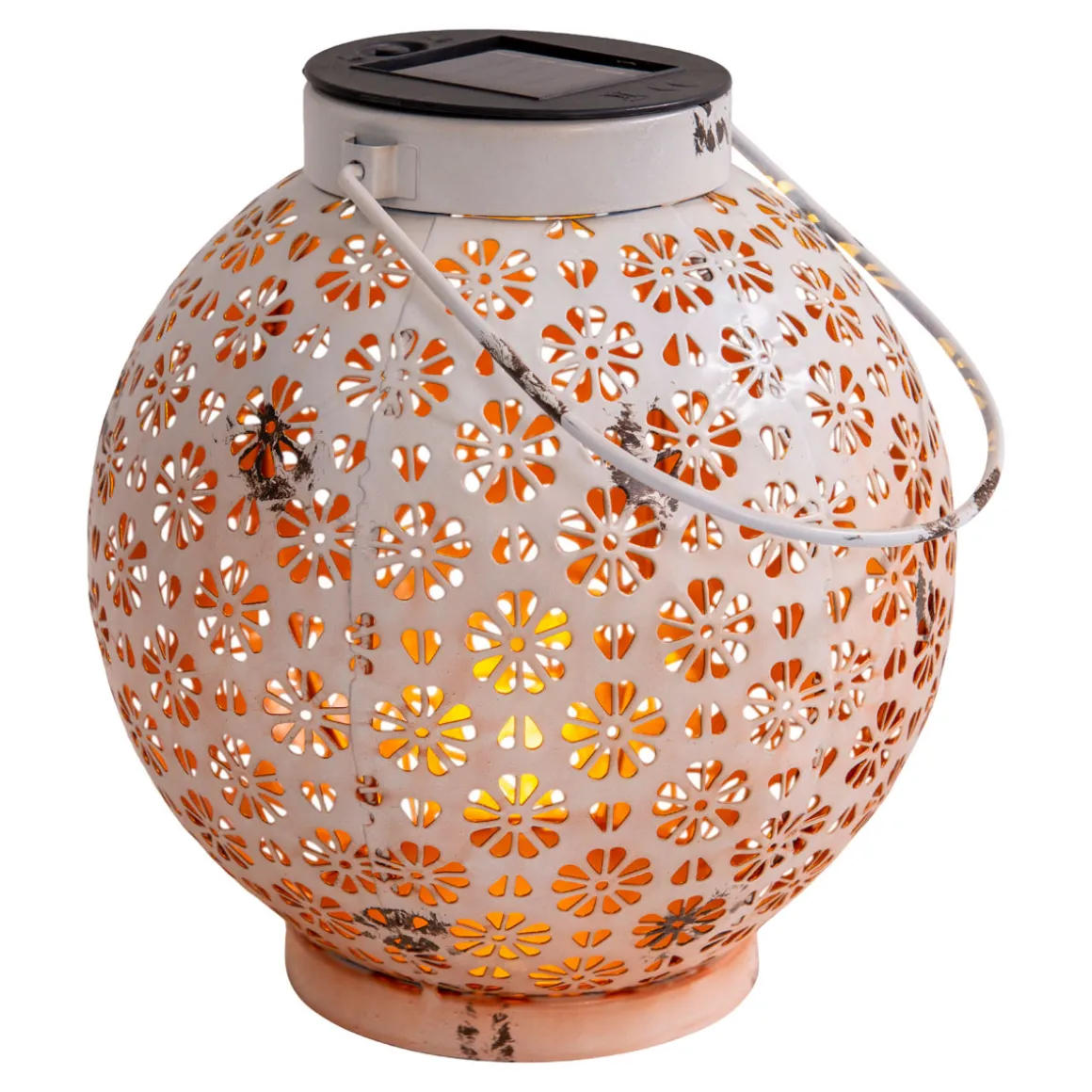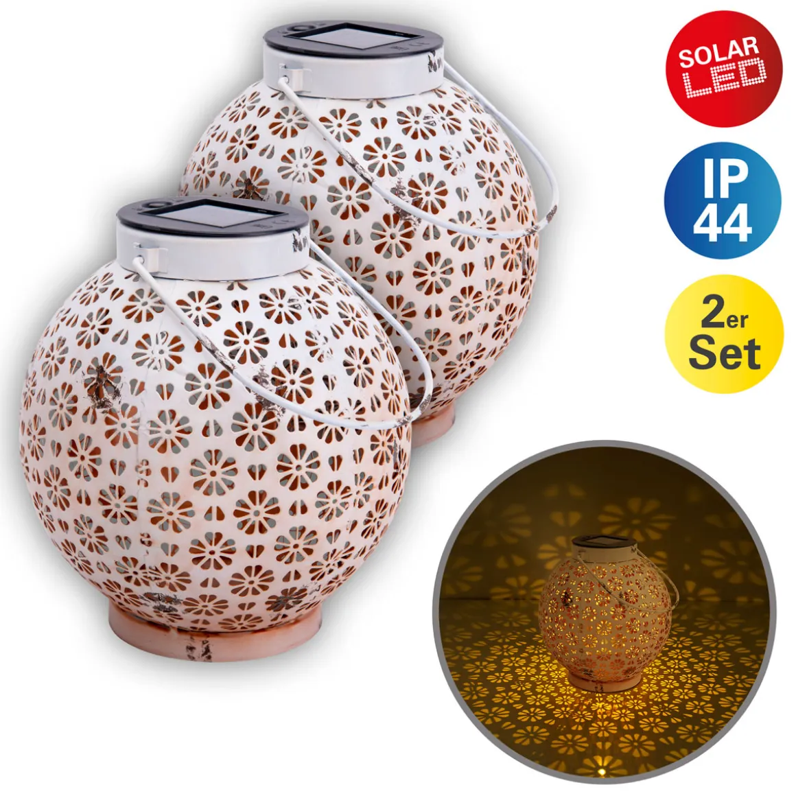 Mit dieser stilvollen Solarleuchte setzen Sie Ihren Außenbereich meisterhaft in Szene. Sie ist die perfekte Wahl, um Ihren Garten oder Ihre Terrasse in ein einladendes Licht zu tauchen. Eine Leuchte im Oriental-Style, die durch ihre gelungene Gestaltung und hochwertige Materialien besticht. Die kugelförmige Form und gemütliche Optik sind hier perfekt vereint. Die Verabeitung von Metall macht die Solarleuchte robust und für alle Beleuchtungsvorhaben im Außenbereich optimal. Weiß unterstreicht die Vielseitigkeit, Anpassungsfähigkeit und Modernität dieser schönen Leuchte. Dieser Artikel hat eine Abmessung von 18 cm Breite, 18 cm Länge und 19,5 cm Höhe. Diese Solarleuchte ist mit 2 hochwertigen LEDs ausgestattet und bietet somit eine ansprechende und energiesparende Beleuchtung. Die Leuchte lässt sich ganz simpel über den Druckschalter ein- und ausschalten. Mit dem zusätzlichen USB-Anschluss können Sie Ihre Geräte leicht und schnell aufladen. Der leistungsstarke Ni-MH AA Akku mit einer Kapazität von 2 x 300 mAh versorgt die Leuchte zuverlässig mit der benötigten Energie. Wie echtes Kerzenlicht sorgt diese Leuchte mit Flammeneffekt für eine freundliche und behagliche Atmosphäre. Mit dem eingebauten Dämmerungssensor sorgt diese Leuchte dafür, dass Sie nie im Dunkeln stehen – sie schaltet sich automatisch ein, wenn es draußen dunkel wird. Die Klasse 3 und die Schutzart IP44 sorgen für idealen Schutz vor Staub und Spritzwasser. Abschließend lässt sich sagen, dass solarbetriebene Außenleuchten nicht nur eine umweltfreundliche und kostengünstige Beleuchtungslösung bieten, sondern auch durch ihre einfache Installation und vielseitigen Einsatzmöglichkeiten überzeugen. Sie tragen dazu bei, den Außenbereich sowohl funktional als auch geschmackvoll ansprechend zu gestalten und leisten gleichzeitig einen wertvollen Beitrag zum Schutz unserer natürlichen Ressourcen.