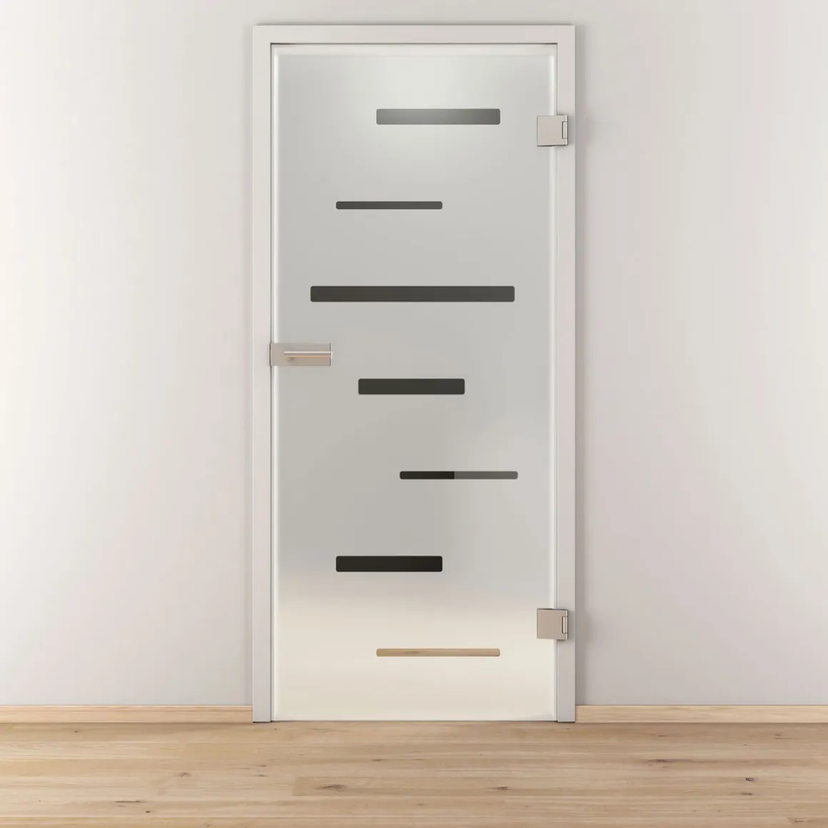 Die Novadoors Glasdrehtür NOVA 511 mattiert ist die perfekte Wahl für alle, die ihr Zuhause mit einem Hauch von Eleganz und Stil verschönern möchten. Mit ihrem schmalen Streifendekor und der matten Oberfläche verleiht sie jedem Raum eine besondere Note.