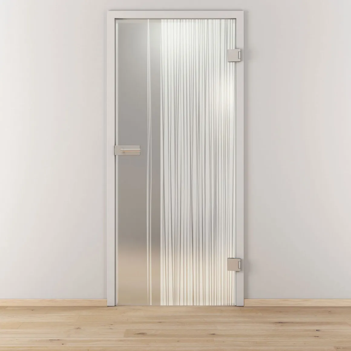Sie suchen nach einer stilvollen und modernen Lösung für Ihre Innentüren? Die Novadoors Glasdrehtür NOVA 584 mattiert ist genau das, was Ihr Zuhause braucht! Mit ihrem eleganten Design und der hochwertigen Verarbeitung aus Einscheibensicherheitsglas bringt sie nicht nur Licht in Ihre Räume, sondern setzt auch ein echtes Statement. Diese Tür vereint Ästhetik mit Sicherheit und sorgt dafür, dass Sie sich rundum wohlfühlen. Das schmale Streifen-Dekor verleiht der Tür eine zeitlose Optik, die sich perfekt in jeden Wohnstil integrieren lässt. Ob als Hingucker im Wohnzimmer oder als dezente Trennung zwischen Flur und Küche – diese Drehtür macht überall eine gute Figur!