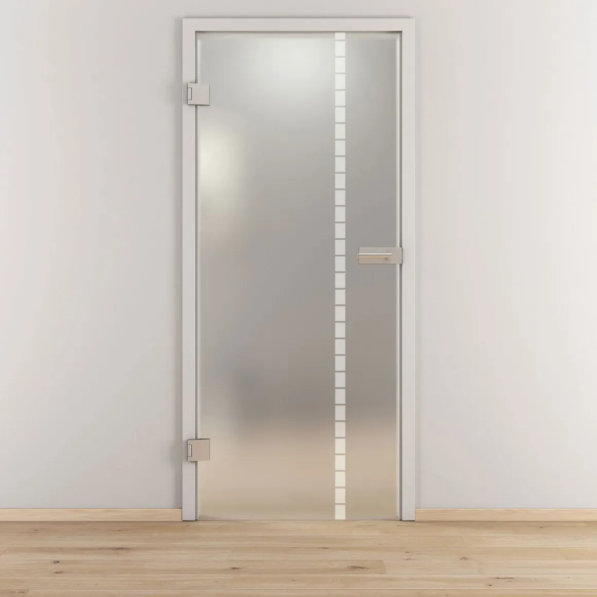 Verleihen Sie Ihrem Innenbereich eine elegante und moderne Note mit der Novadoors Glasdrehtür NOVA 598 mattiert. Diese hochwertige Glastür ist nicht nur ein funktionales Element, sondern auch ein stilvolles Design-Statement. Mit ihrer matten Oberfläche sorgt sie für Privatsphäre, ohne den Raum dunkel wirken zu lassen. Die abgerundeten Kanten und das schmale Streifen-Dekor verleihen ihr eine zeitlose Eleganz, die sich perfekt in jedes Studio oder Büro integrieren lässt.