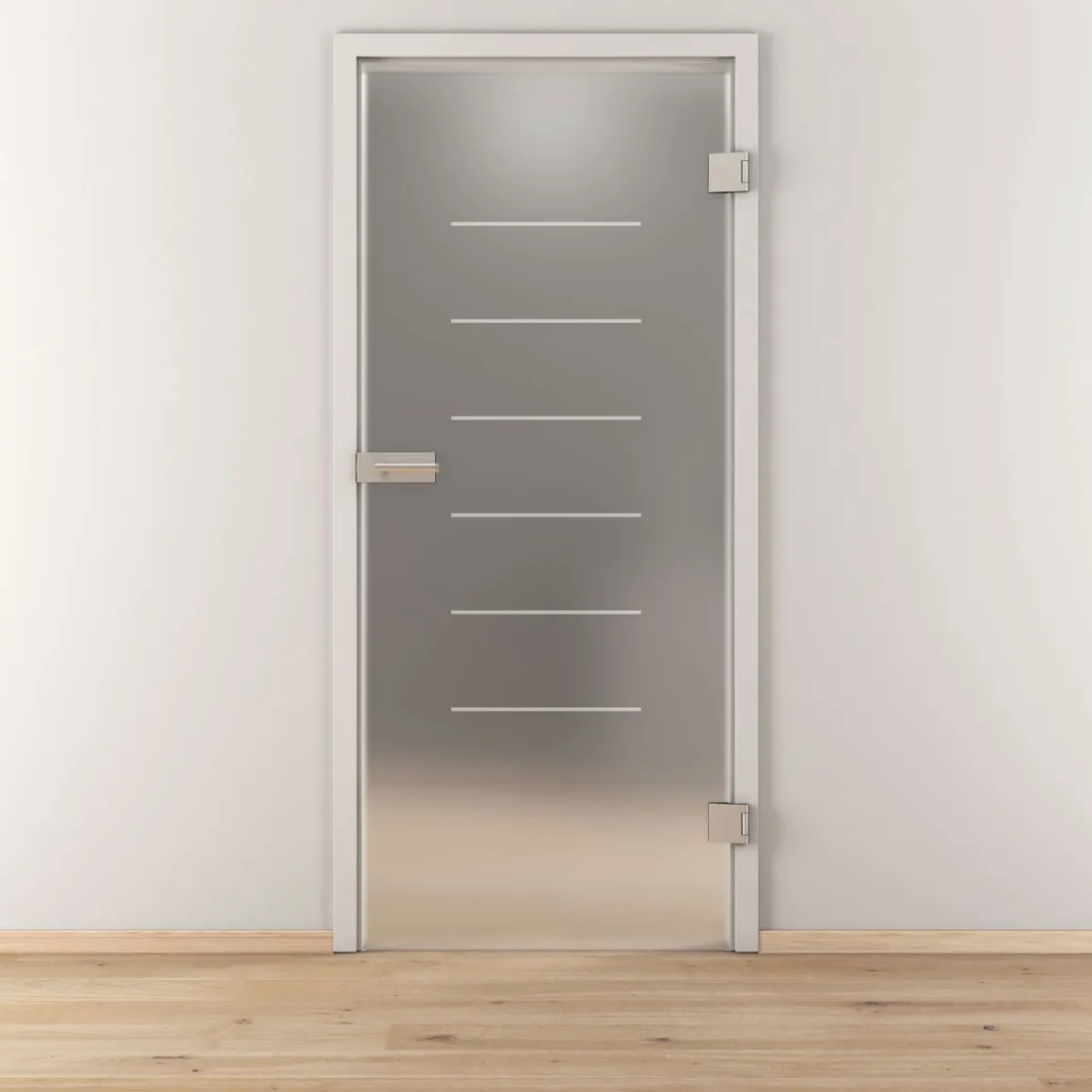Diese Tür ist wie gemacht für alle Kunden, die ihr Zuhause modernisieren möchten. Ob Sie gerade renovieren oder einfach frischen Wind in Ihre Wohnräume bringen wollen – die Novadoors Glasdrehtür NOVA 631 mattiert erfüllt höchste Ansprüche an Stil und Funktionalität. Besonders geeignet ist sie für helle Räume wie Wohnzimmer oder Büros, wo Lichtdurchlässigkeit gefragt ist. Dank ihrer matten Oberfläche genießen Sie gleichzeitig Privatsphäre ohne Kompromisse bei der Helligkeit. Das elegante Streifendekor fügt sich harmonisch in jede Einrichtung ein – sei es minimalistisch-modern oder klassisch-elegant.