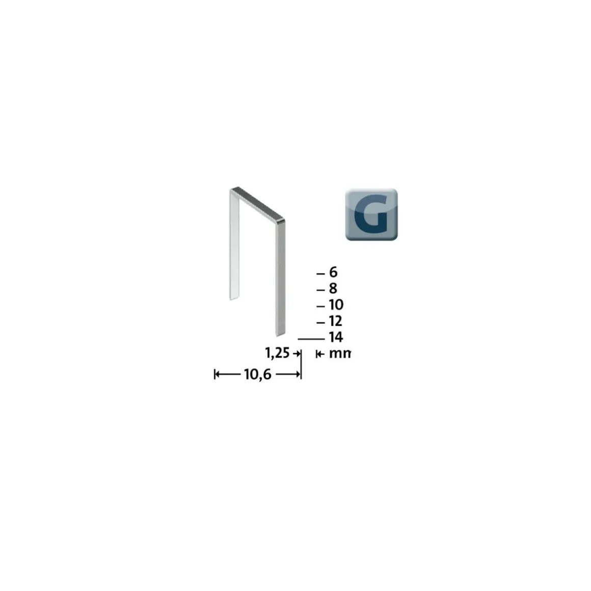 - G Typ 11/12 mit einer Klammerbreite von 10,6 mm und einer Länge von 12 mm