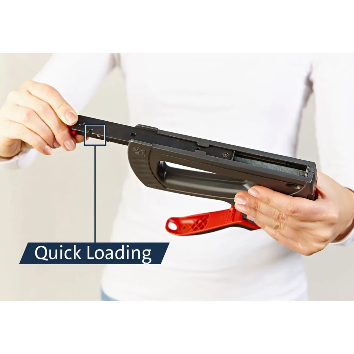 - Quick-Loading-System: Unterlademechanik mit Sicherheitsentriegelung für einfaches Befüllen des Klammermagazins