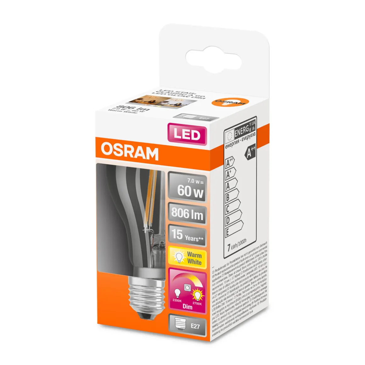 Erleben Sie mit dem Osram LED-Leuchtmittel E27 warmweiß 60W dimmbar eine einzigartige Kombination aus Antik/Vintage/Retro Stil und moderner Technologie. Sparen Sie bis zu 80% Energie und genießen Sie eine lange Lebensdauer von bis zu 15.000 Stunden.