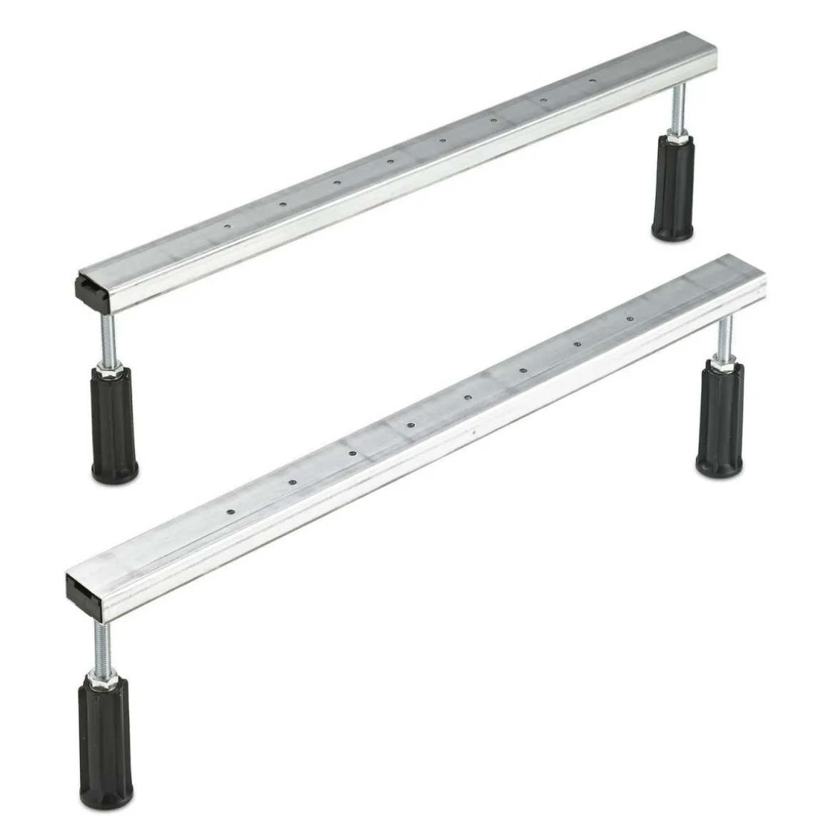 - Lieferumfang: 2 C-Schienen; 4 Stellfüße; 4 Gewindestangen; 8 Federnutenplättchen, 4 Schrauben; 12 Kontermutter; Montageanleitung