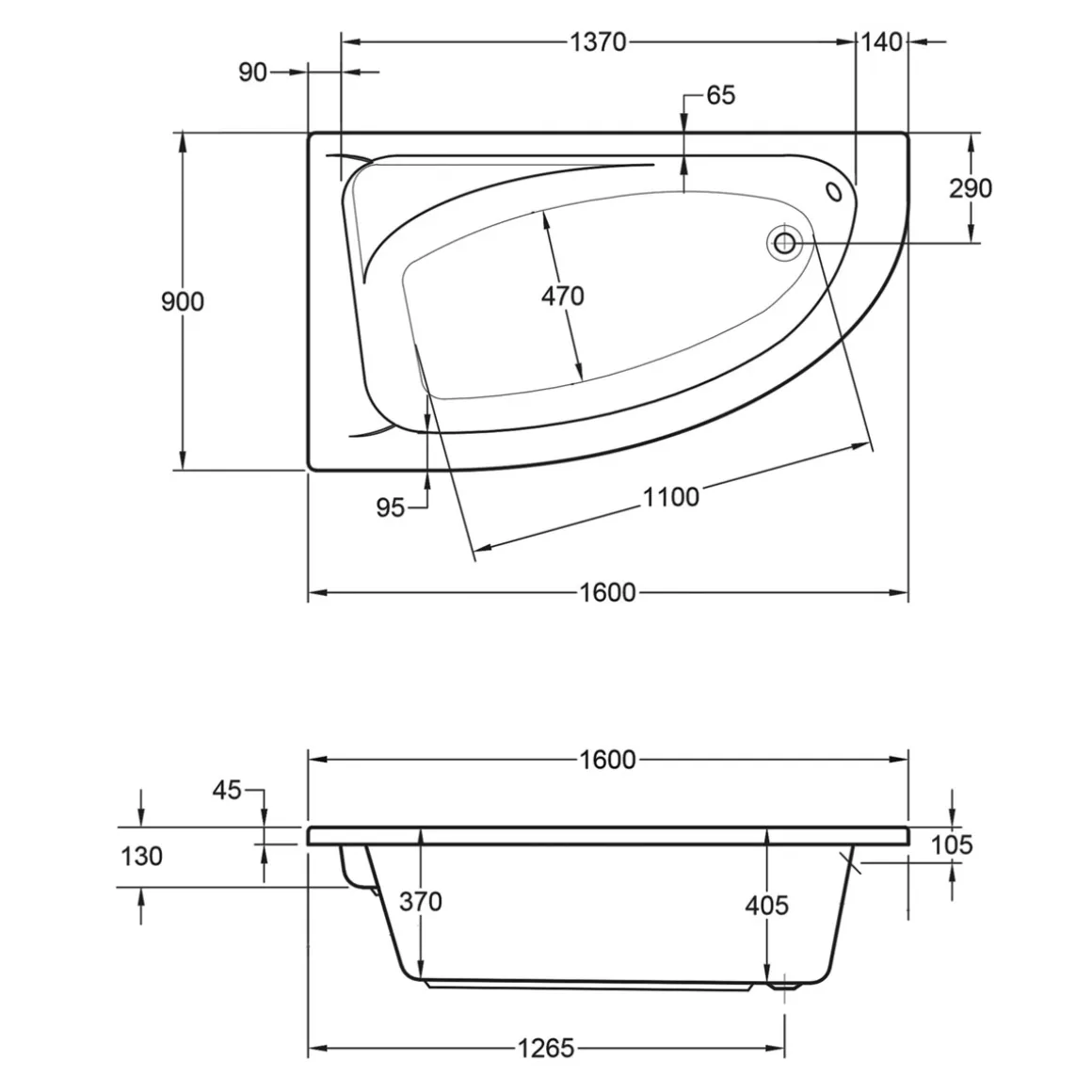 - – Lieferumfang: Einbau-Eckwanne ohne Wannenträger