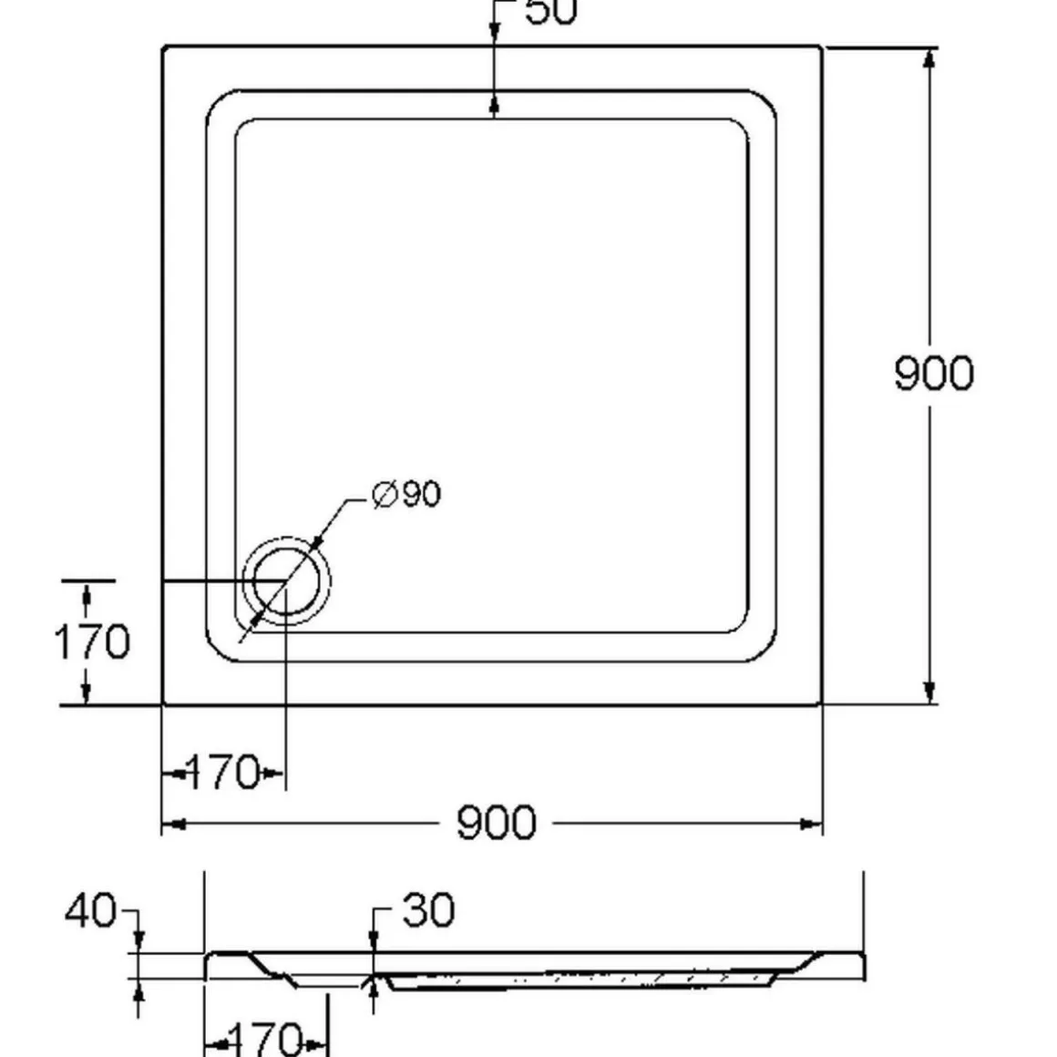 - Duschwannenhöhe: 13 cm