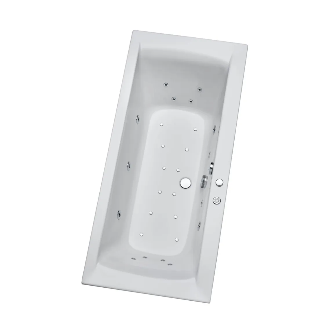 - Weitere Eigenschaften : Anschlussfertig vorbereitet , Anzahl Düsen :25 Stk. (5 Seitendüsen +12 Bodendüsen+4 Fußdüsen+4 Rückendüsen) ; stufenlose Regulierung des Luftsystems und Intervallfunktion