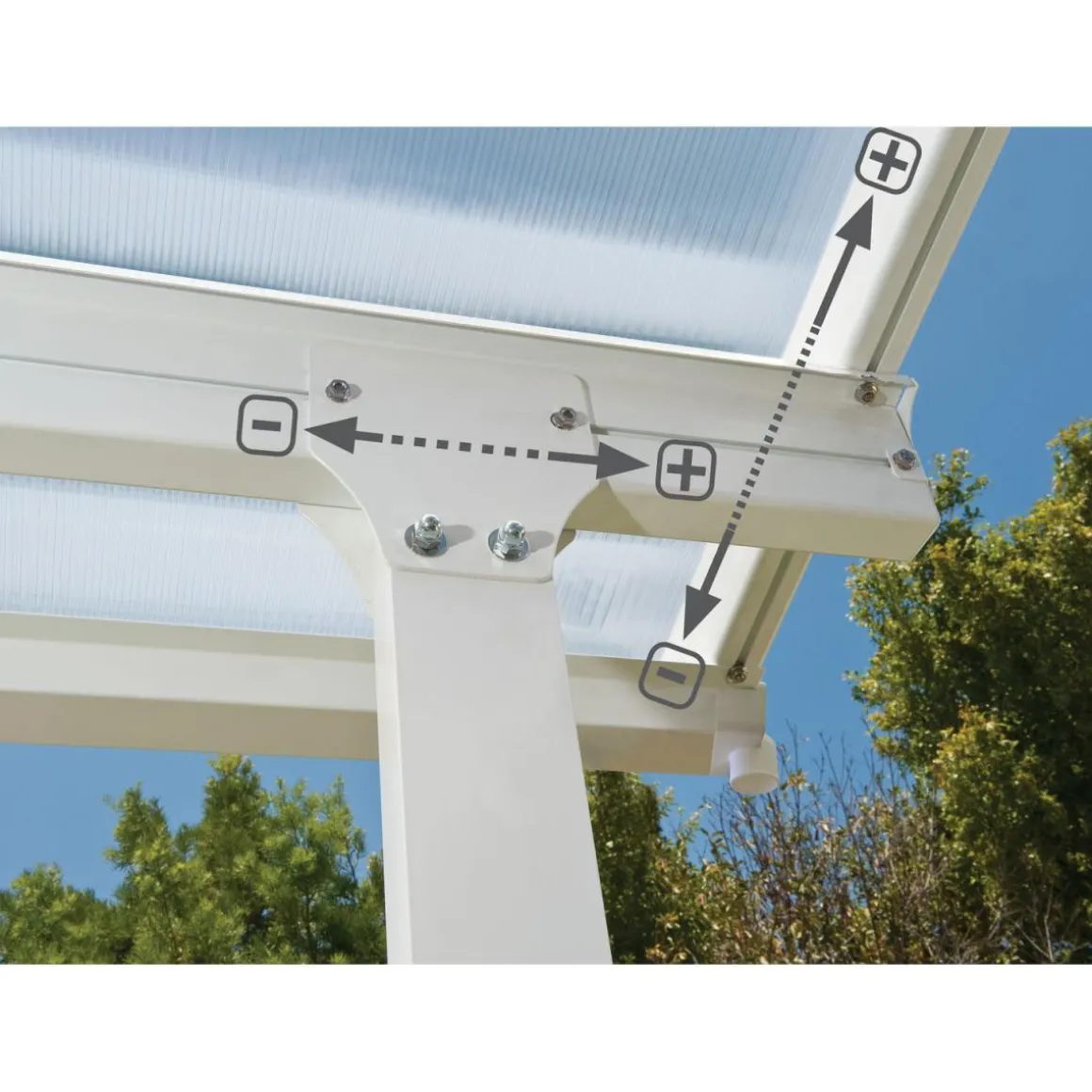 Genießen Sie Ihre Terrasse bei jedem Wetter mit der Palram Terrassenüberdachung Feria. Das hochwertige Aluminiumgestell ist pulverbeschichtet und die klaren Doppelstegplatten aus Polycarbonat bieten optimalen Schutz vor Regen und UV-Strahlung.