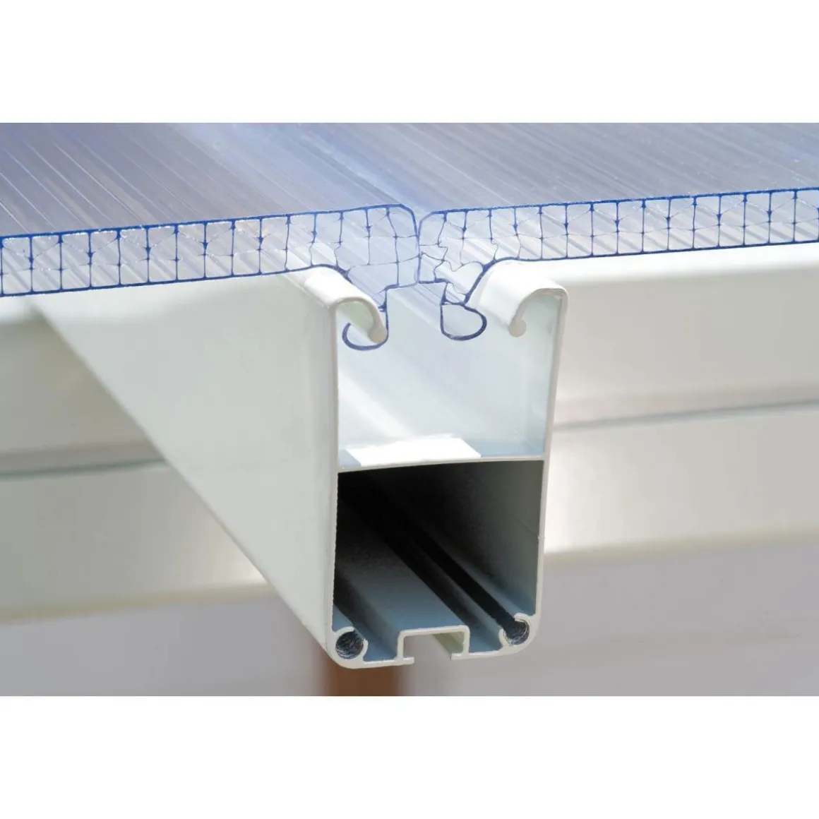 - Dacheindeckung: klare Doppelstegplatten aus Polycarbonat