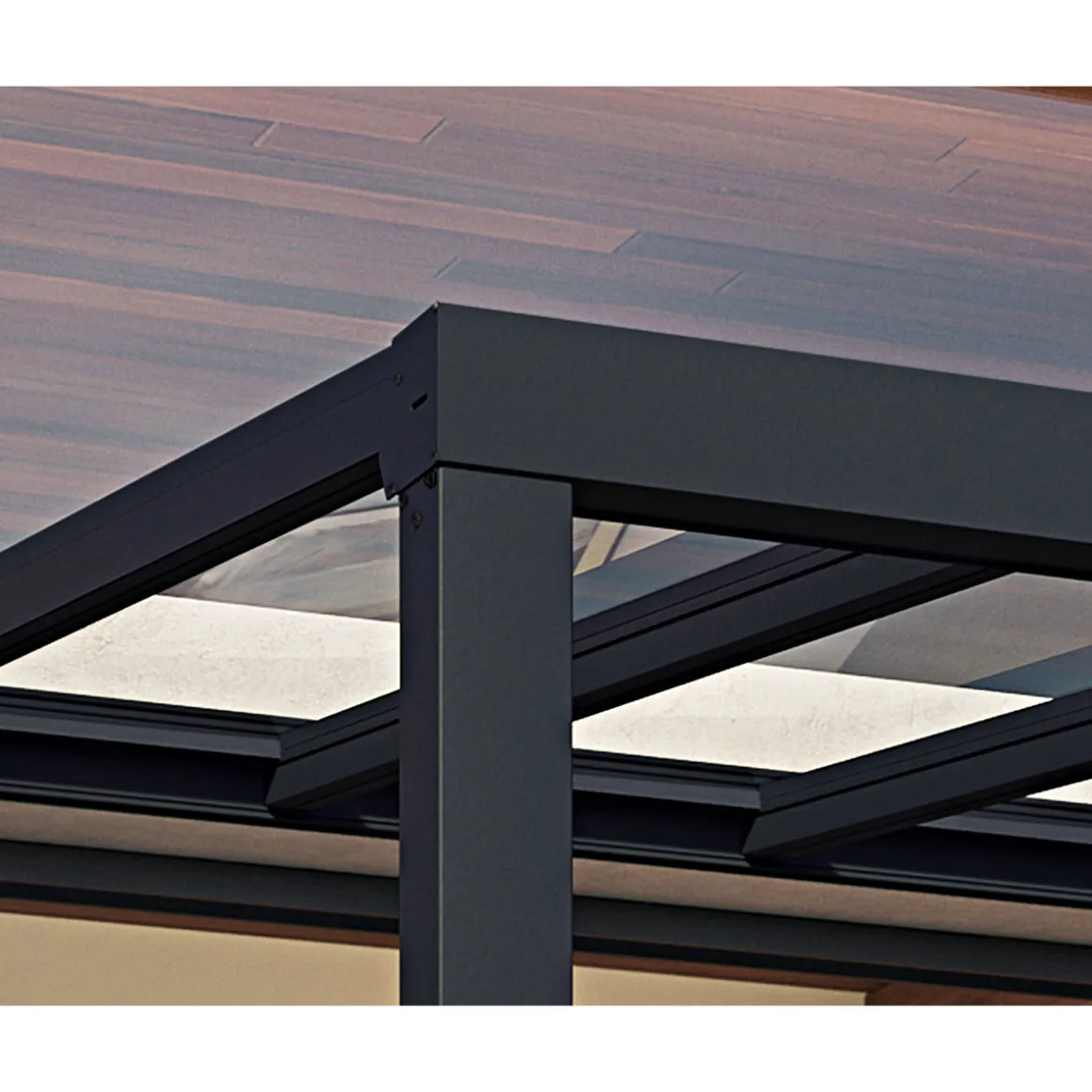 Mit der Palram Terrassenüberdachung Stockholm schaffen Sie einen geschützten Bereich auf Ihrer Terrasse. Das moderne Design aus pulverbeschichtetem Aluminium in Anthrazitgrau und klarem Polycarbonat-Dach lässt keine Wünsche offen.