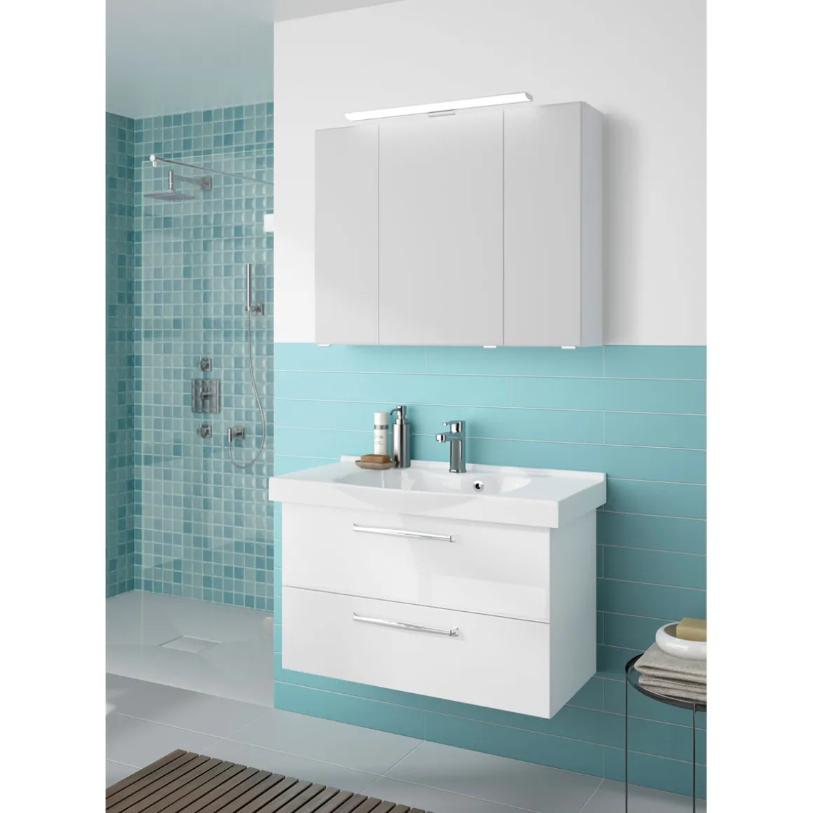 - Hochwertiger Spiegelschrank in Weiß