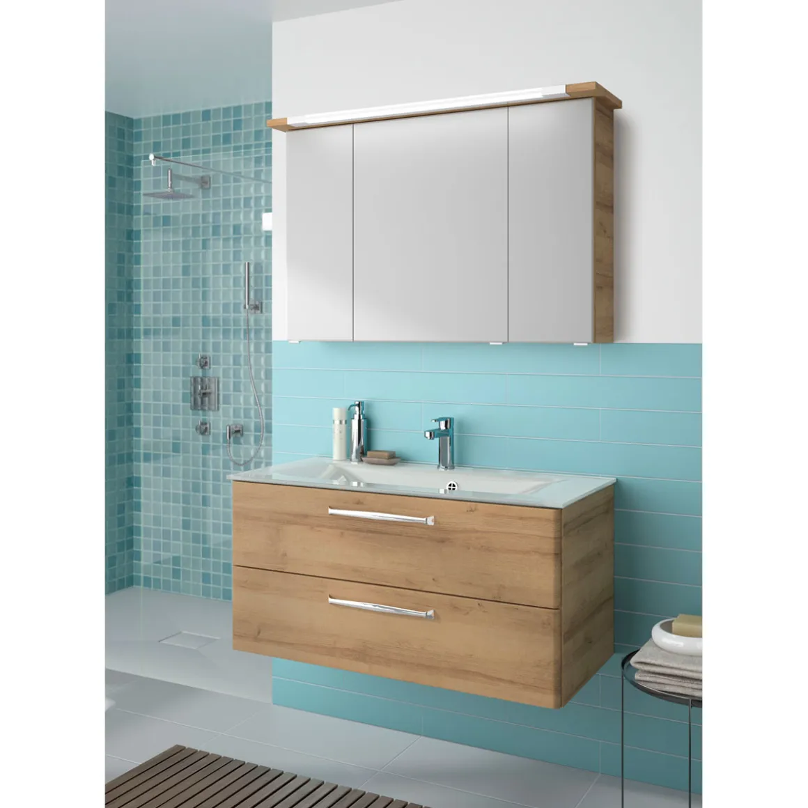 Entdecken Sie den Pelipal Spiegelschrank Trentino Eiche inkl LED-Aufbauleuchte – der perfekte Begleiter für Ihr Badezimmer!