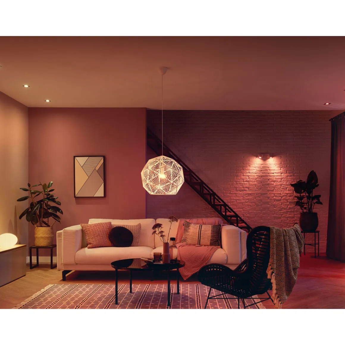 Erleben Sie mit der Philips Hue LED-Reflektorlampe einzigartige Lichtmomente in Ihrem Zuhause. Mit über 16 Millionen Farben und verschiedenen Weißtönen können Sie Ihre Beleuchtung individuell anpassen und so eine angenehme Atmosphäre schaffen.