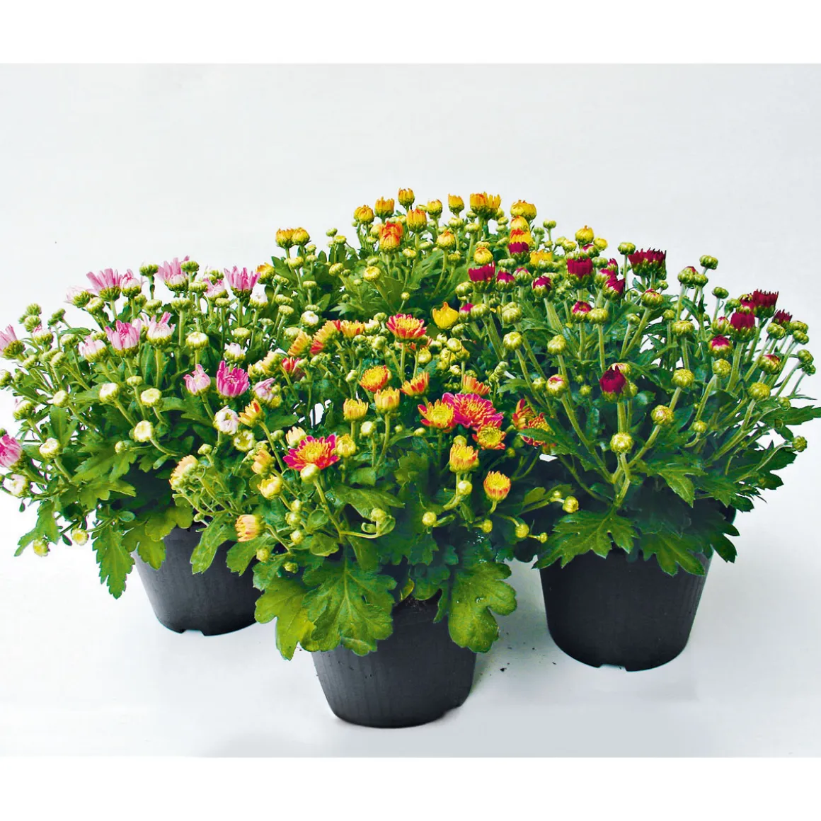 Die Chrysanthemenbüsche Mix sind ideal für Kunden, die eine pflegeleichte und farbenfrohe Pflanze suchen, die sich für verschiedene Standorte eignet.