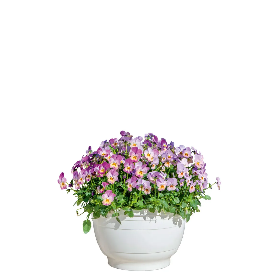 Mit der Hornveilchen Ampel holen Sie sich eine farbenfrohe Blütenpracht in Ihren Garten oder auf Ihren Balkon. Die Viola cornuta ist eine robuste Pflanze, die sowohl halbschattige als auch sonnige Standorte verträgt.