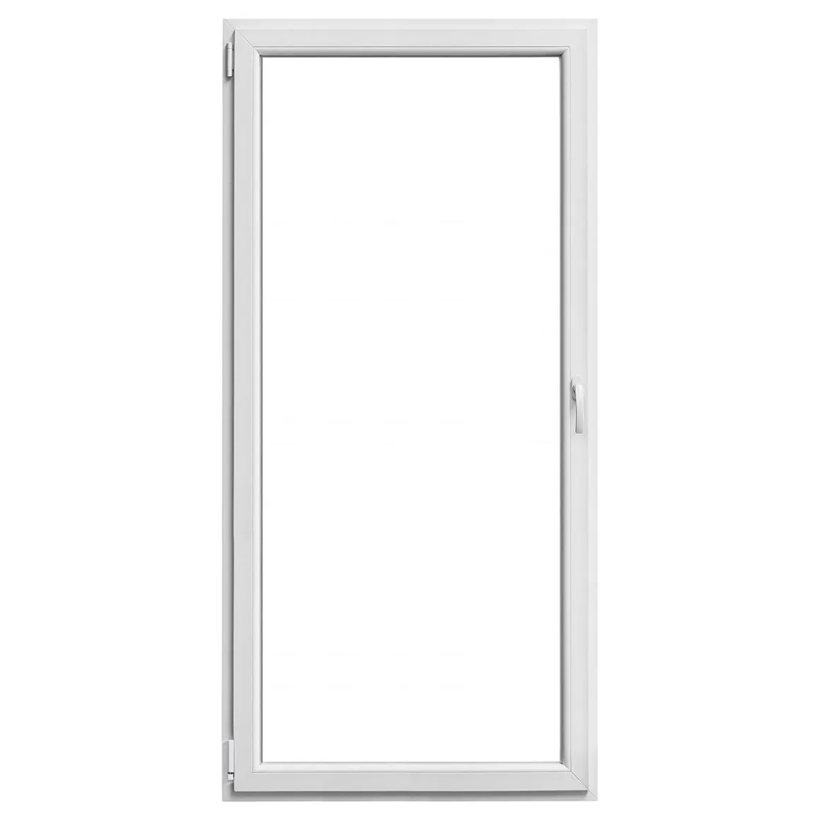 PVC-Balkontür in weiß, 1-flügelig, 3-fach verglast, verschiedene Größen erhältlich, z. B. BxH 100x210cm.