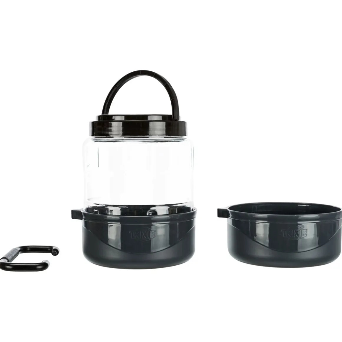 Mit dem praktischen Reise-Set Dog on Tour haben Sie immer alles dabei, um Ihren Hund auch unterwegs bestens zu versorgen. Ob auf Ausflügen oder im Urlaub – das Set ist der ideale Begleiter. Mit einem Volumen von 2 Litern bietet es genug Platz für Wasser und Futter und durch seine runde Form lässt es sich platzsparend verstauen. Überzeugen Sie sich selbst von der praktischen Handhabung des Sets und machen Sie Ihrem Liebling eine Freude.