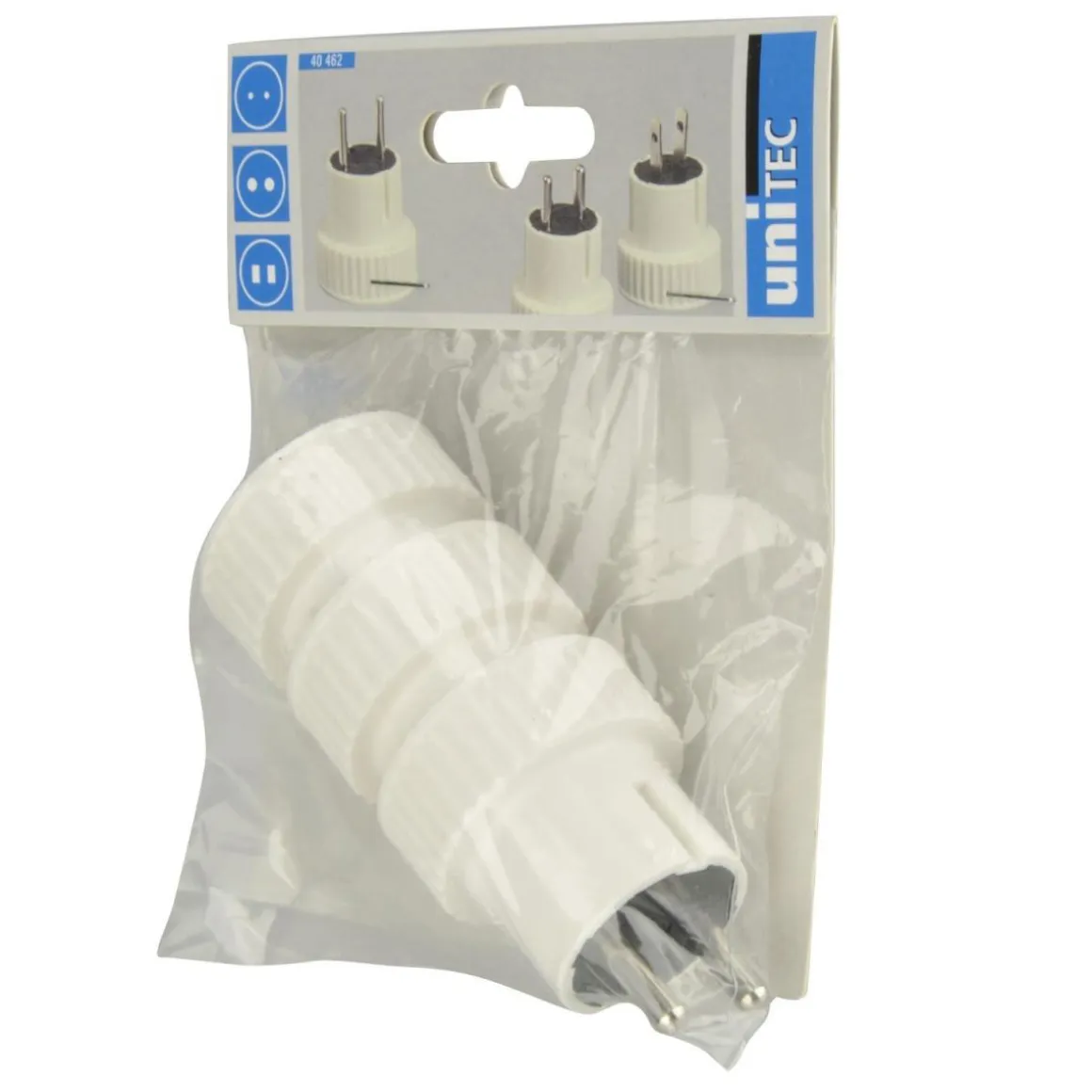 - Das Set enthält drei Stecker in der Grundfarbe Weiß aus robustem Kunststoff.