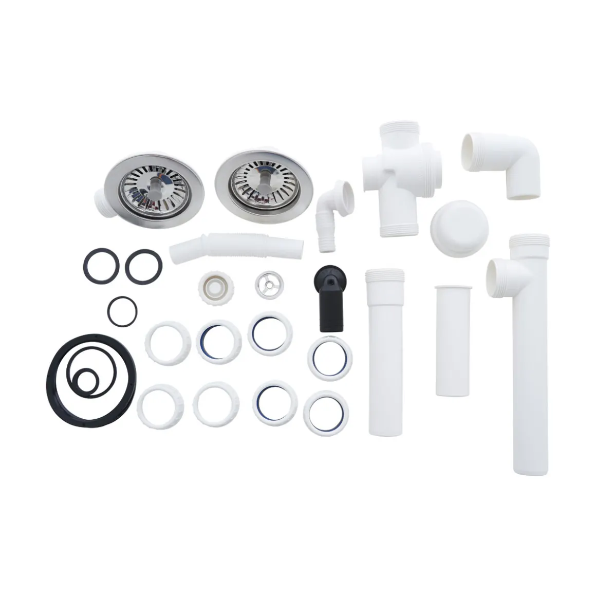 - Inkl. Ab- und Überlaufgarnitur, Siebkorb und Raumspar-Siphon