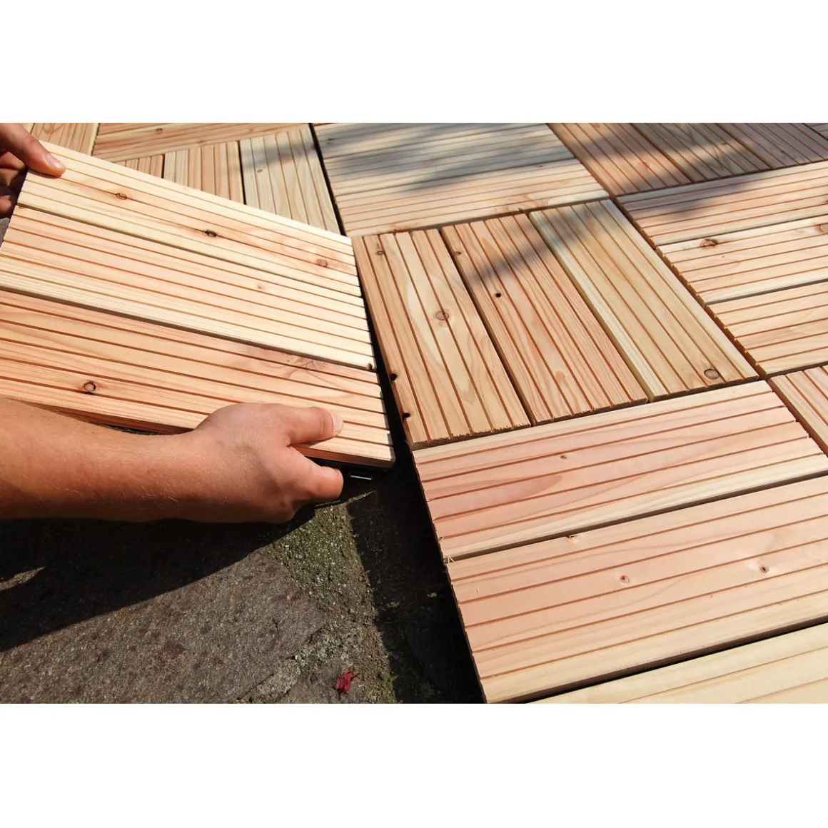 Die Rettenmeier Holz-Klickfliesen sind ideal für Kunden, die eine natürliche und langlebige Lösung für ihre Terrassen suchen. Diese Fliesen sind einfach zu installieren und erfordern nur minimale Wartung.