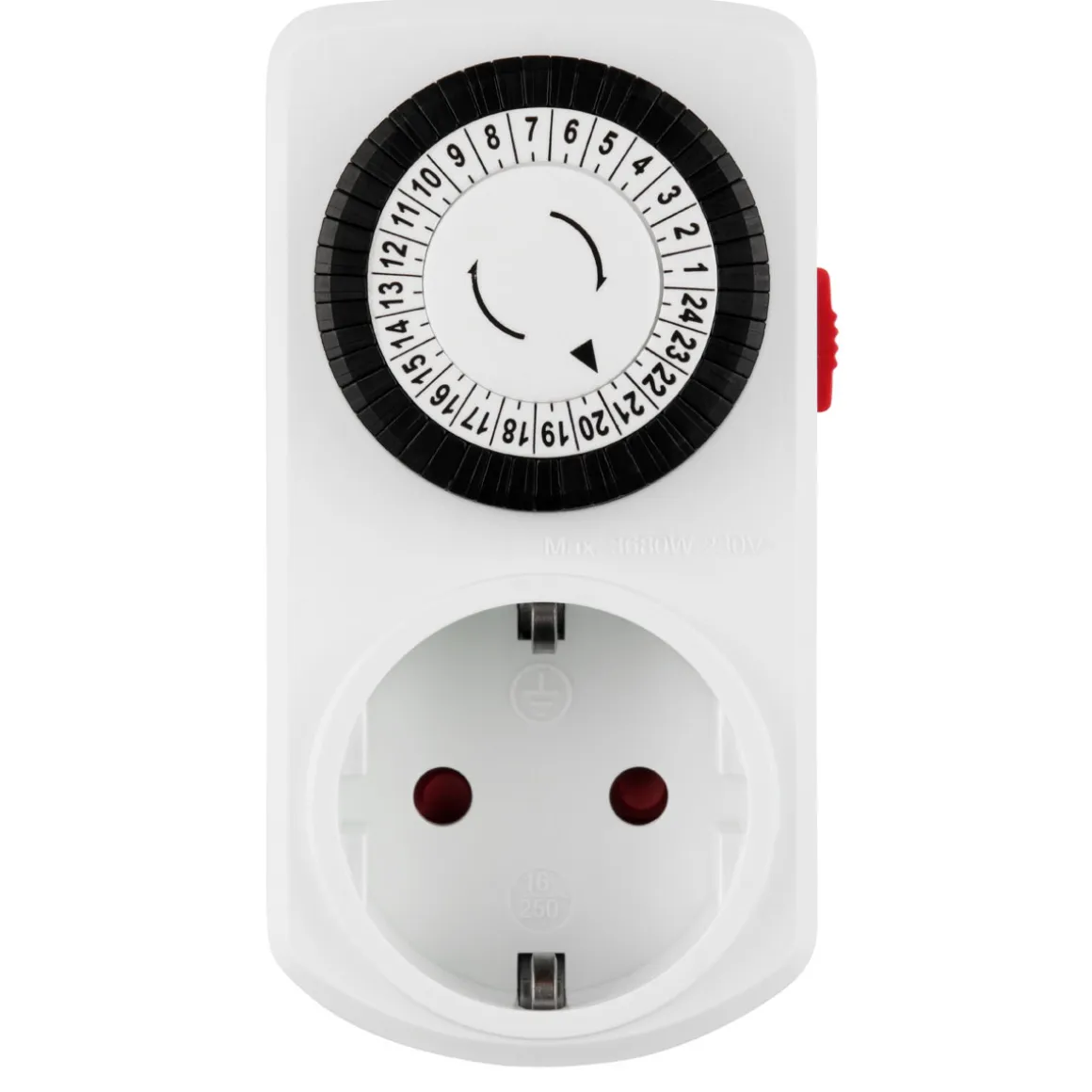 - PRAKTISCH – Zwischenstecker mit Schalter für Ein/Aus und zeitgesteuertes Schalten (1-polig).