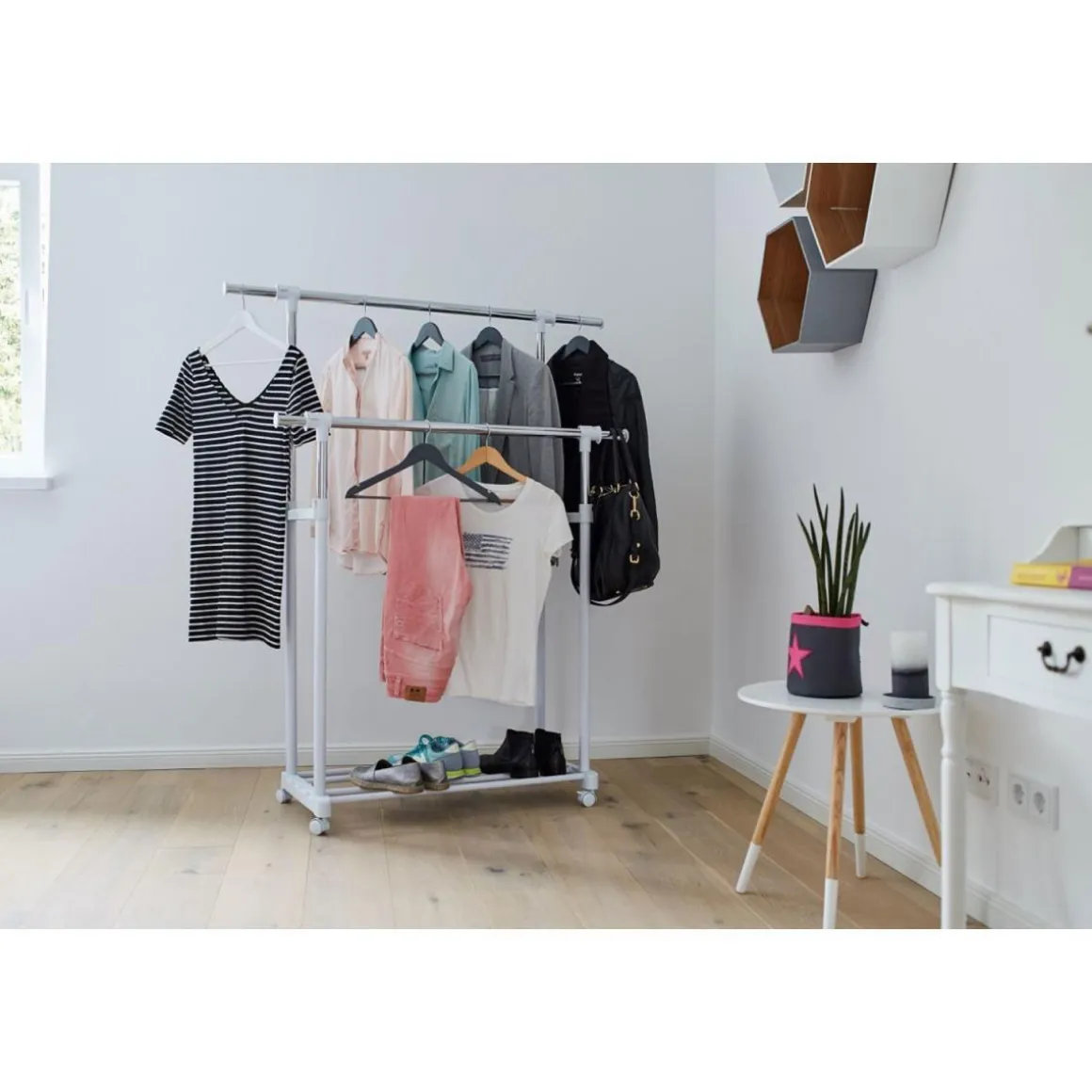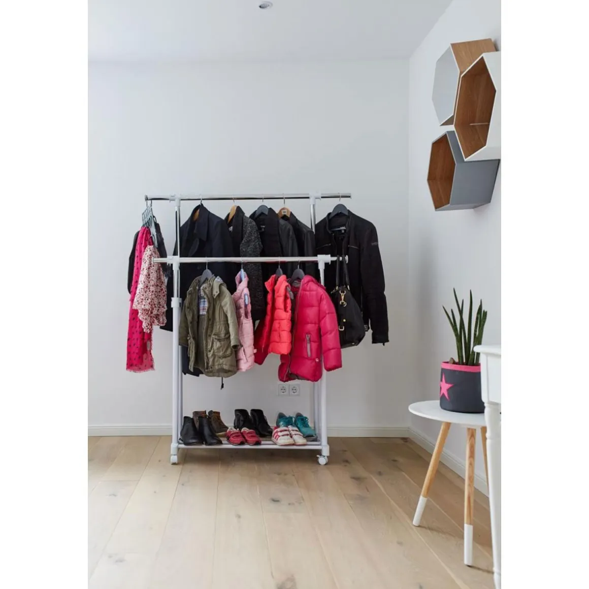 Mit dem Roll-Kleiderständer XXL schaffen Sie im Handumdrehen zusätzlichen Stauraum für Ihre Kleidung. Der platzsparende Kleiderständer lässt sich einfach montieren und bietet mit einer Belastbarkeit von 60 kg ausreichend Platz für Ihre Textilien.