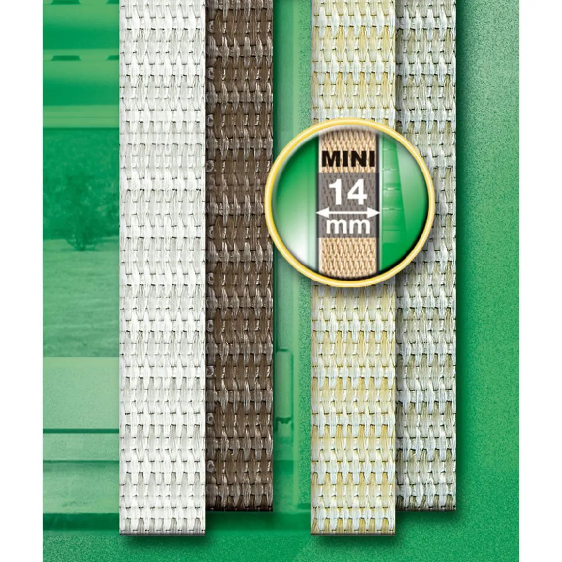 Die Schellenberg Rollladengurte des Systems „Mini“ haben eine Breite von 14 mm und lassen sich bequem und einfach in die Schellenberg Rollladen-Lösungen des Systems „Mini“ integrieren. Sie eignen sich für die händische Bedienung von Rollläden an Fenstern und Türen.