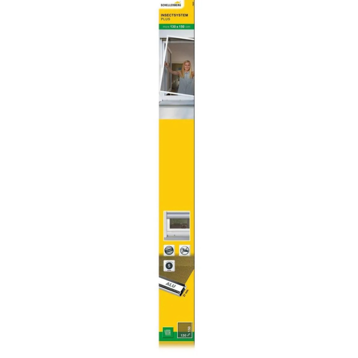 Das Schellenberg Insektenschutz-Fenster PLUS ist ein Komplettset für Fenster, das aus einem Fliegengitter mit Rahmen besteht. Das Fliegengitter aus langlebigem, UV-stabilem Fiberglas wird in einen umlaufenden Rahmen aus stabilen Aluminium-Profilen eingespannt und mit Hilfe der im Set enthaltenen Einhängewinkel aus Edelstahl am Fensterrahmen eingehängt.