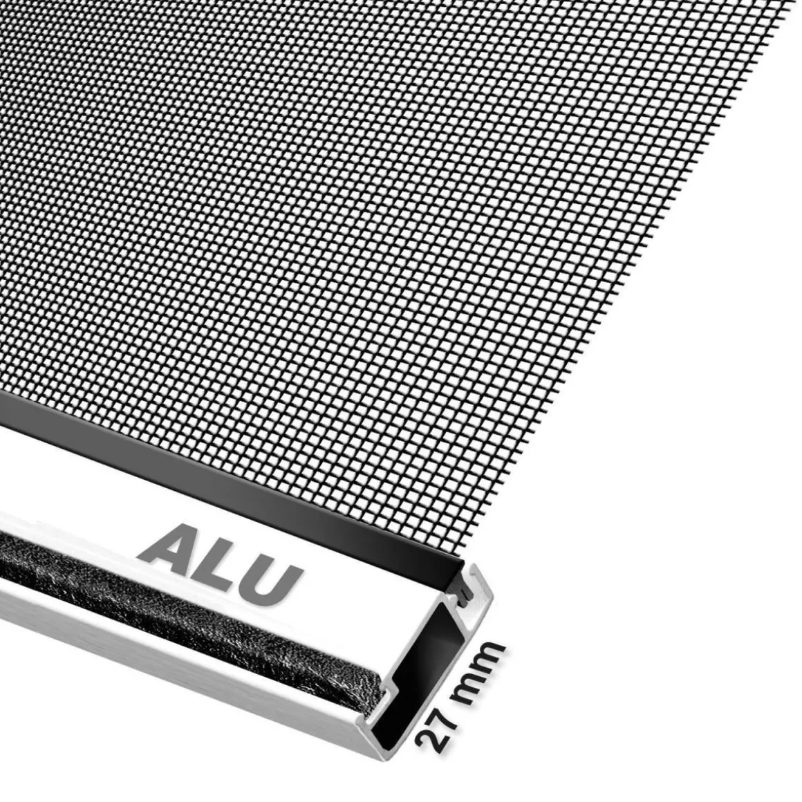 - Insektenschutz-Rahmen aus flachen, breiten Aluprofilen für eine sehr gute Stabilität