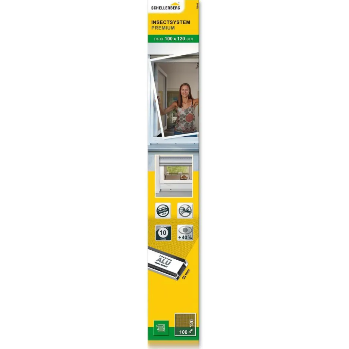 Das Schellenberg Insektenschutz-Fenster PREMIUM ist ein Komplettset für Fenster, das aus einem Fliegengitter mit Rahmen besteht. Das Fliegengitter aus langlebigem, UV-stabilem KLARSICHT-Fiberglas wird in einen umlaufenden Rahmen aus stabilen Aluminium-Profilen eingespannt und mit Hilfe der im Set enthaltenen Einhängewinkel aus Edelstahl am Fensterrahmen eingehängt.