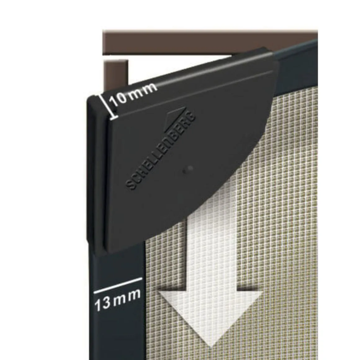 - Geringe Profiltiefe (nur 8 mm): Passt auch bei Fenstern, bei denen nur wenig Platz zwischen Fenster und Rollladen vorhanden ist.