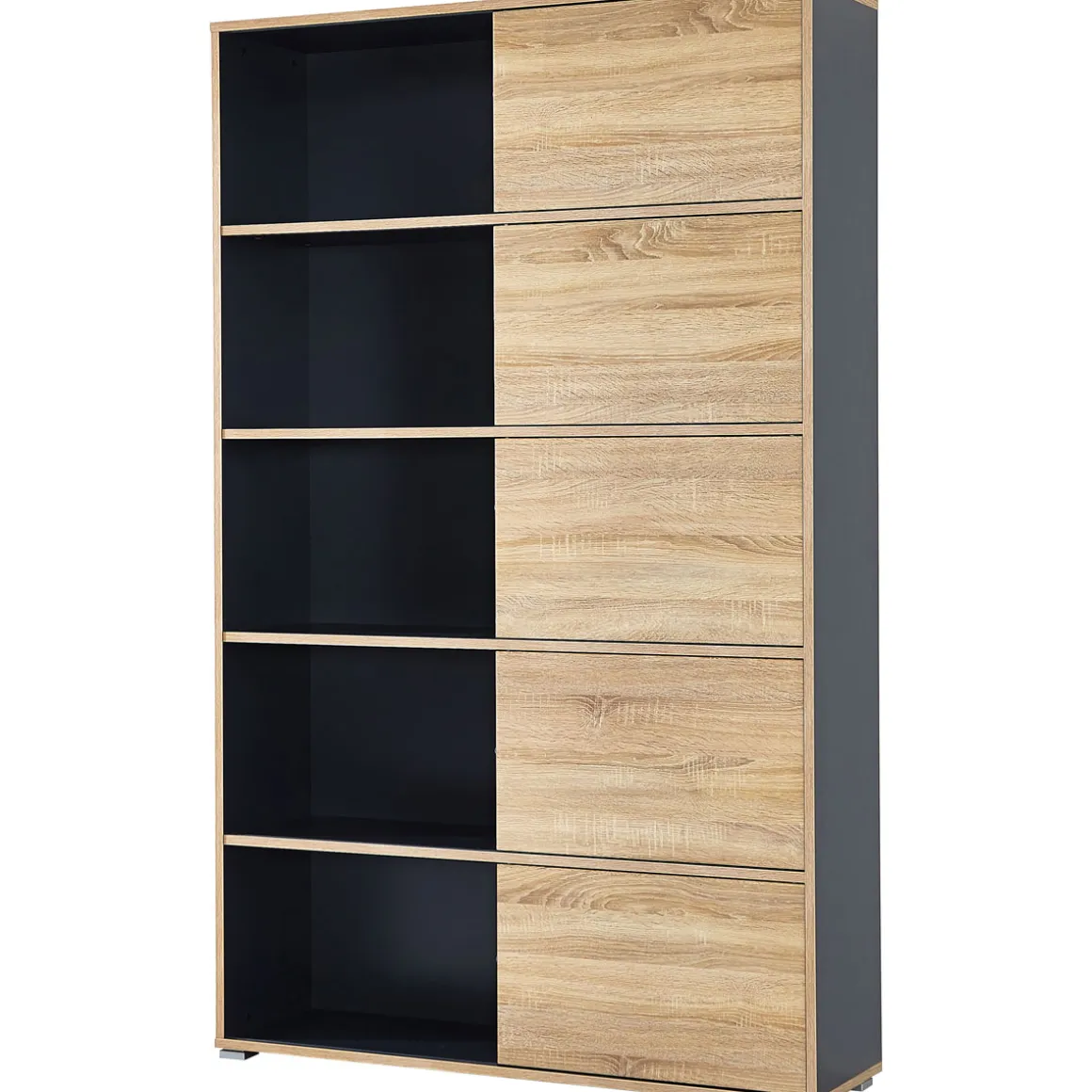 Schiebetürregal 120 x 196 x 35 cm anthrazit/Sonoma Eiche – Ihr Ordnungswunder