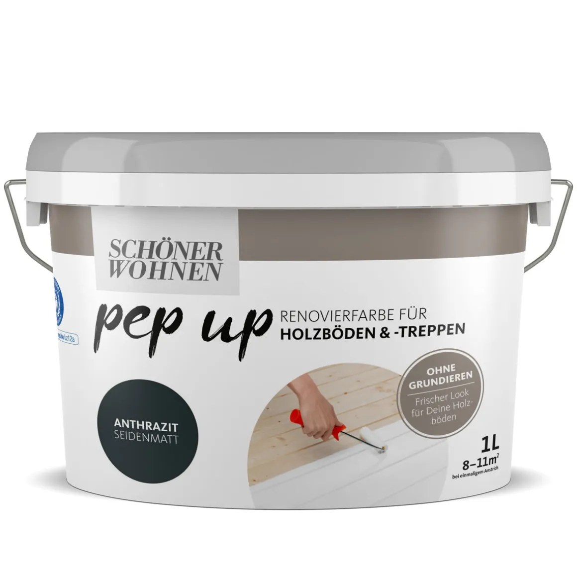 Mit dem Schöner Wohnen Farbe pep up Holzböden und -treppen anthrazit verleihen Sie Ihrem Zuhause einen modernen Look. Der seidenmatte Glanzgrad sorgt für eine edle Optik, während die schnelle Trocknung und hohe Ergiebigkeit das Arbeiten erleichtern.