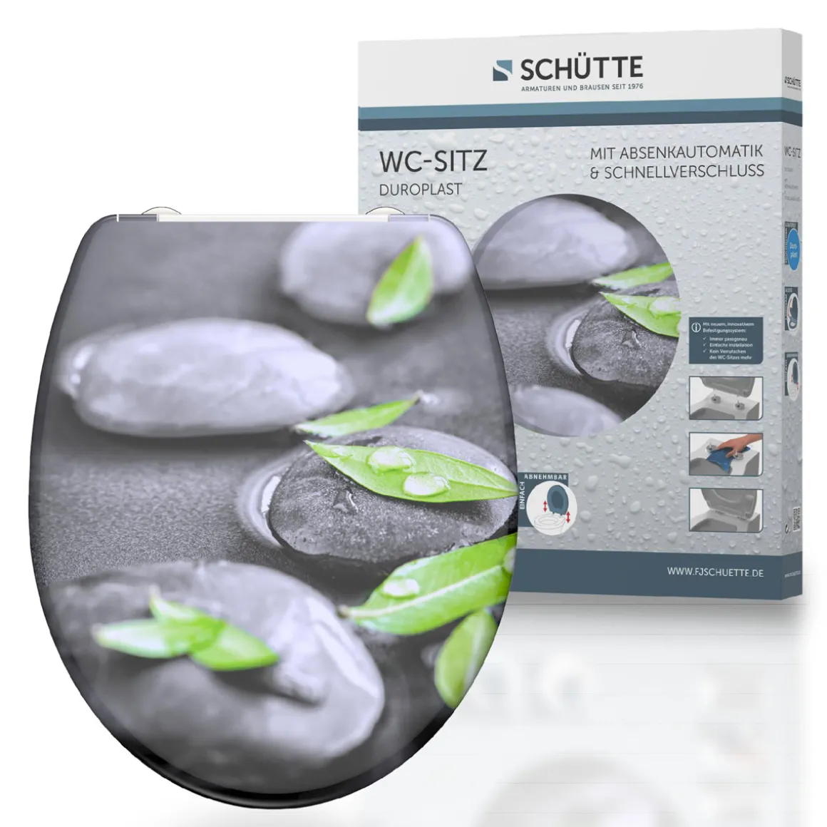 Mit dem Schütte Duroplast WC-Sitz STONE holen Sie sich einen langlebigen und stabilen WC-Sitz ins Bad. Die Soft-Close-Funktion sorgt für angenehme Geräuscharmut beim Toilettengang, während der Schnellverschluss eine schnelle Reinigung ermöglicht. Investieren Sie jetzt in höchsten Sitzkomfort!