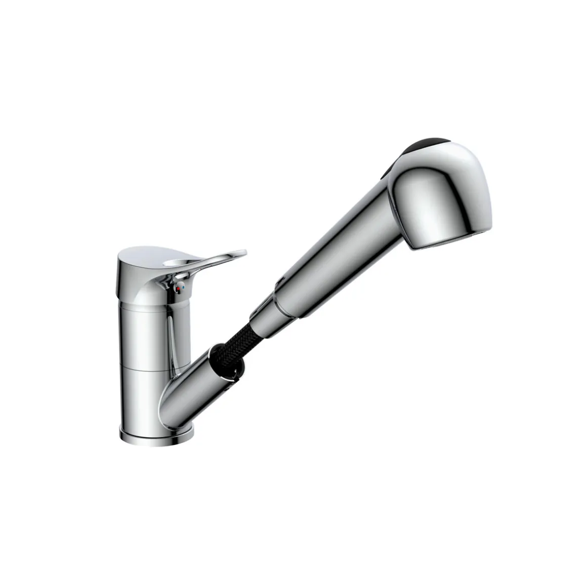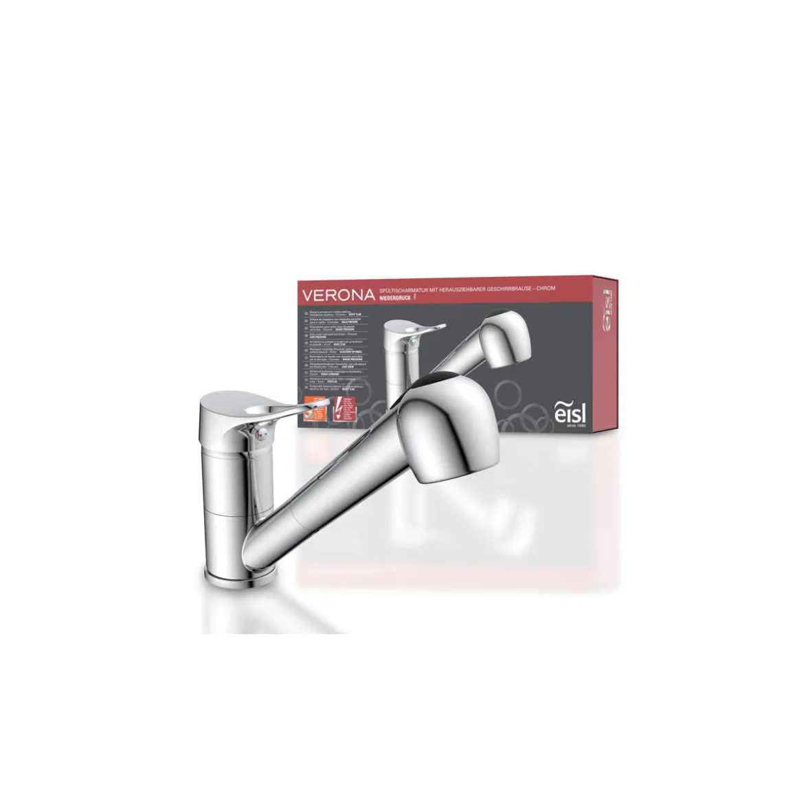 Niederdruck-Spültischarmatur „Verona“ aus Messing in chrom mit Brauseschlauch, Länge ca. 120 cm, 360° schwenkbarer Auslauf, geräuscharme, auswechselbare Kartusche, 2-fach verstellbare Geschirrbrause.