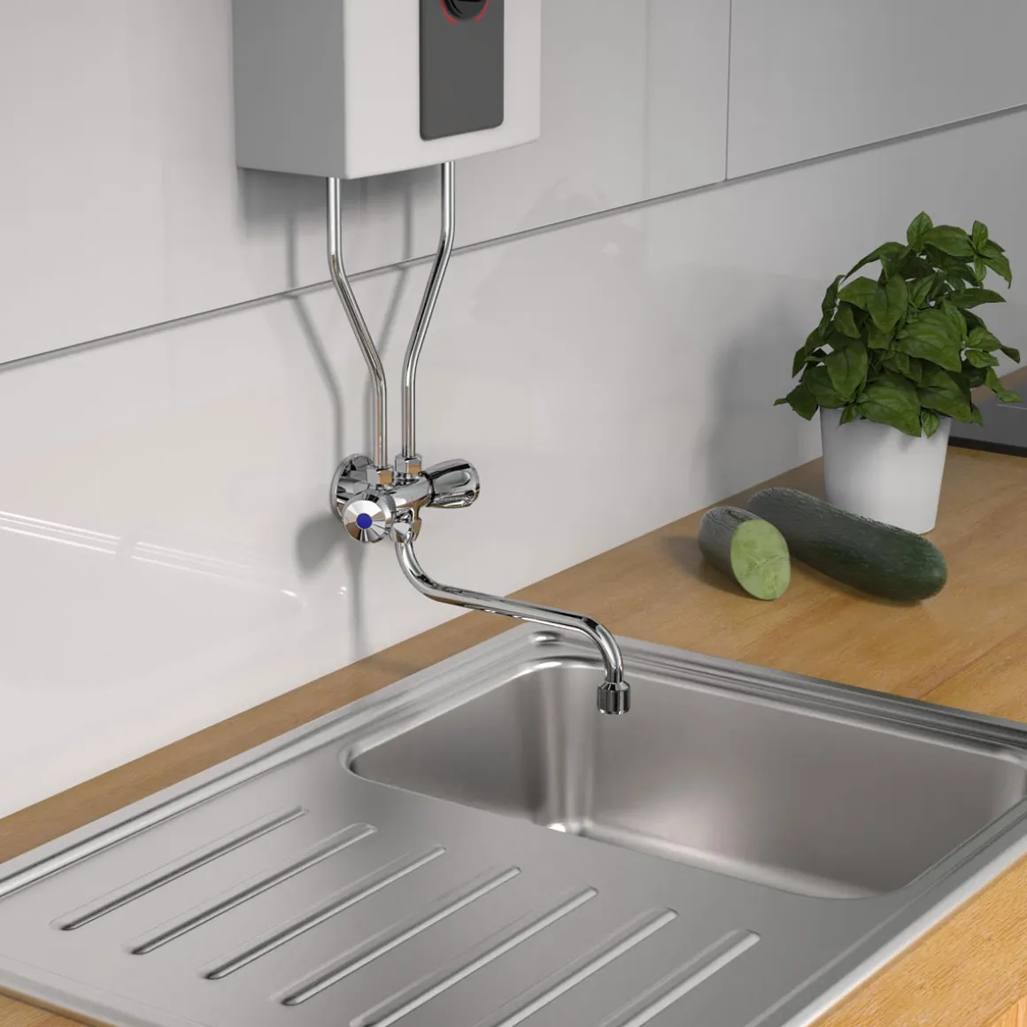 Die Armatur eignet sich ideal für Kunden mit einem Obertischspeicher von bis zu 5 Litern in ihrer Küche.