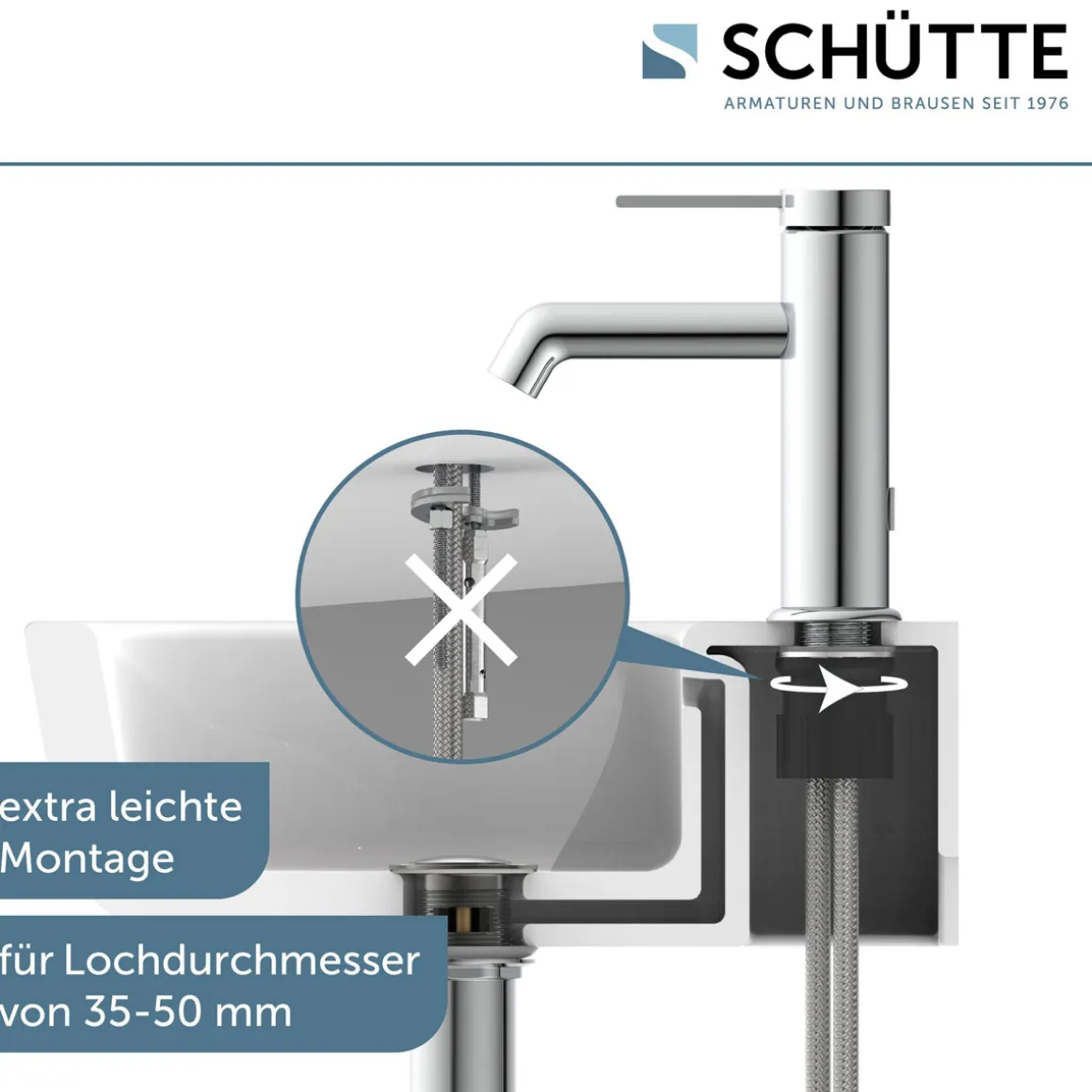 - Waschtischarmatur inklusive Popup Ablaufventil zum Öffnen und Schließen des Ablaufs