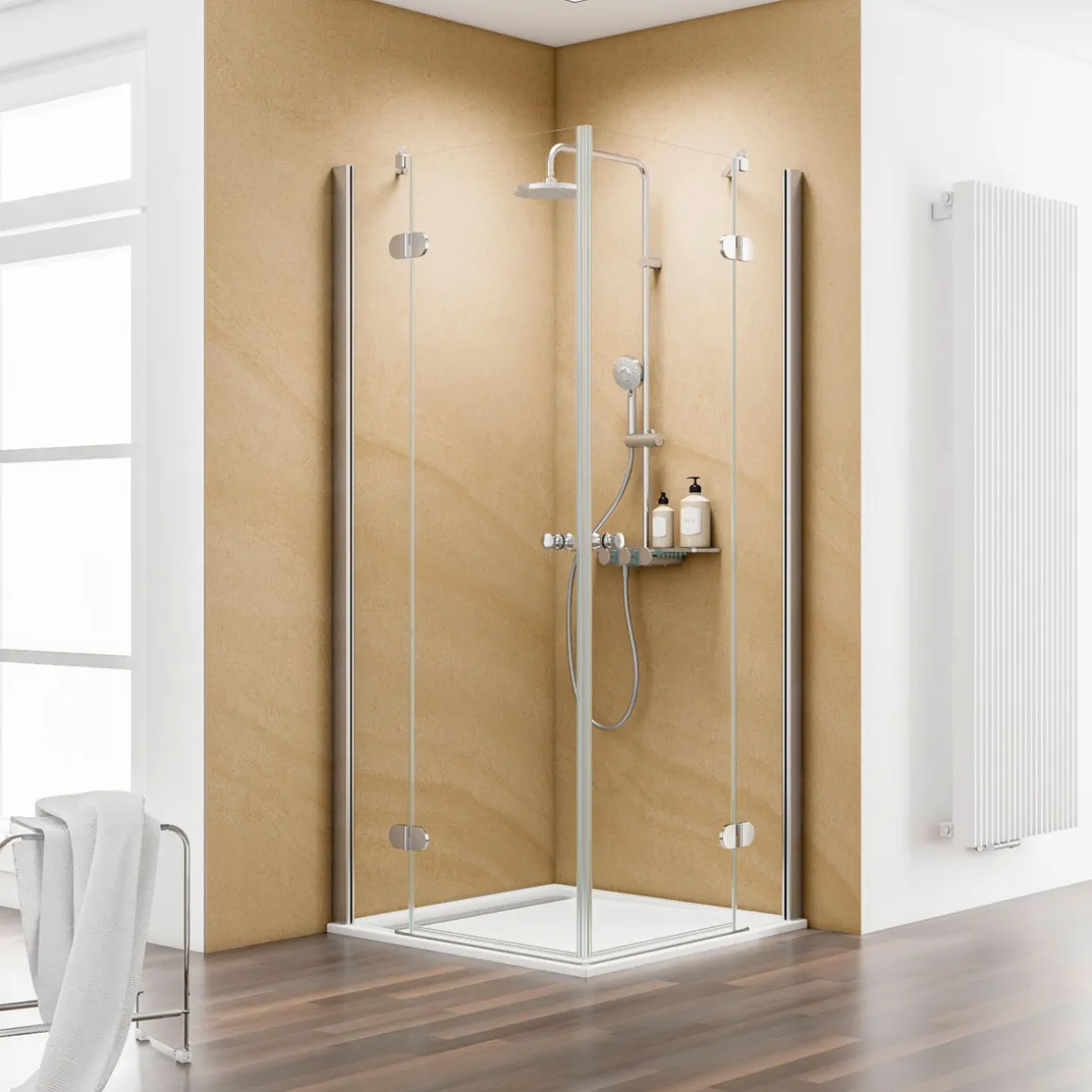 Schulte ExpressPlus MasterClass Eckeinsti auf DB 2000 x 800 x 800 chrom klar fixil Rundgriff