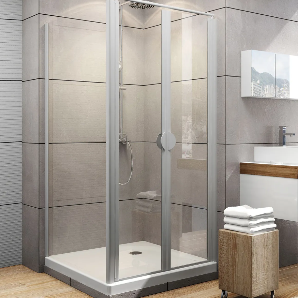 Die Duschkabine Sunny Pendeltür mit Seitenwand verfügt über dominante Aluminiumprofile, die sowohl einen ästhetischen Blickfang in jedem Bad bilden als auch eine zuverlässige Dichtigkeit gewährleisten. Die drei Glaselemente der Sunny Pendeltür mit Seitenwand aus 5 mm starkem Sicherheitsglas (ESG) punkten darüber hinaus mit ihrer brillanten Transparenz, wodurch dem Raum ein schöner Glanz verliehen wird. Neben diesen optischen Attributen weist das nach DIN Norm gefertigte Sicherheitsglas ein hohes Maß an Stabilität auf: Belastungen durch Schläge oder Stöße, Biegungen oder Temperaturschwankungen hält es problemlos stand.